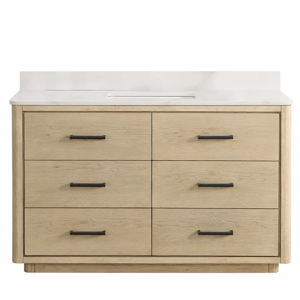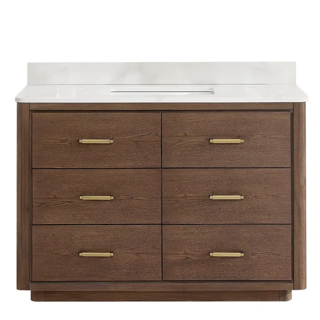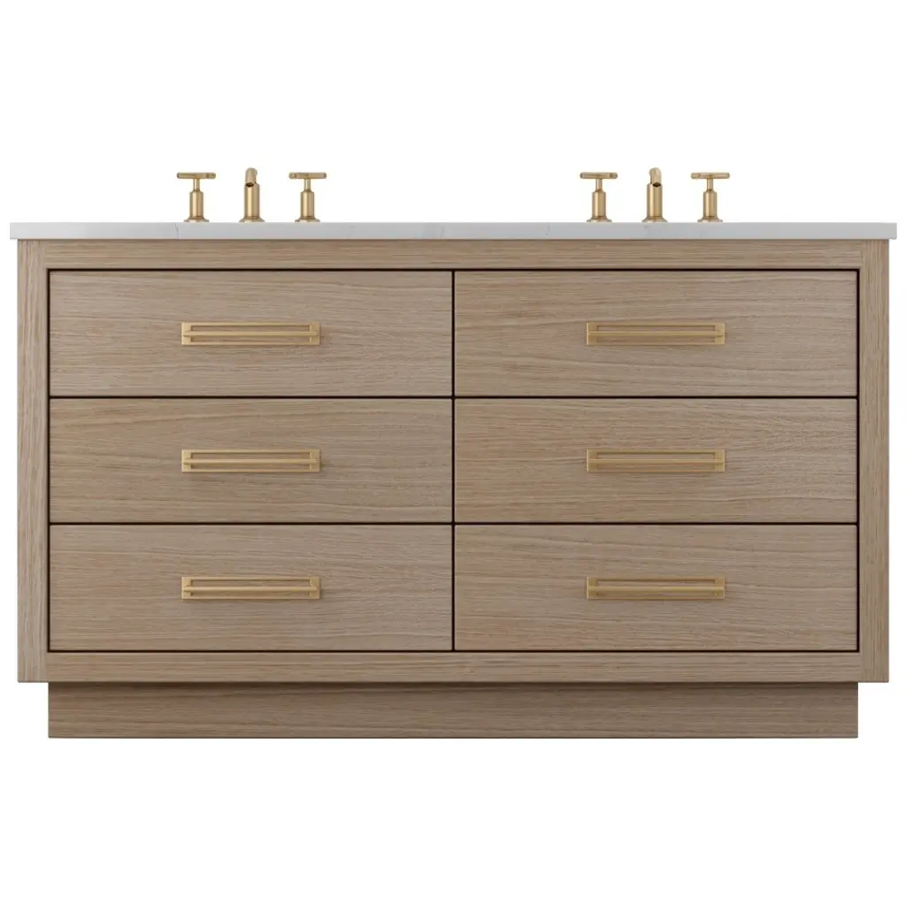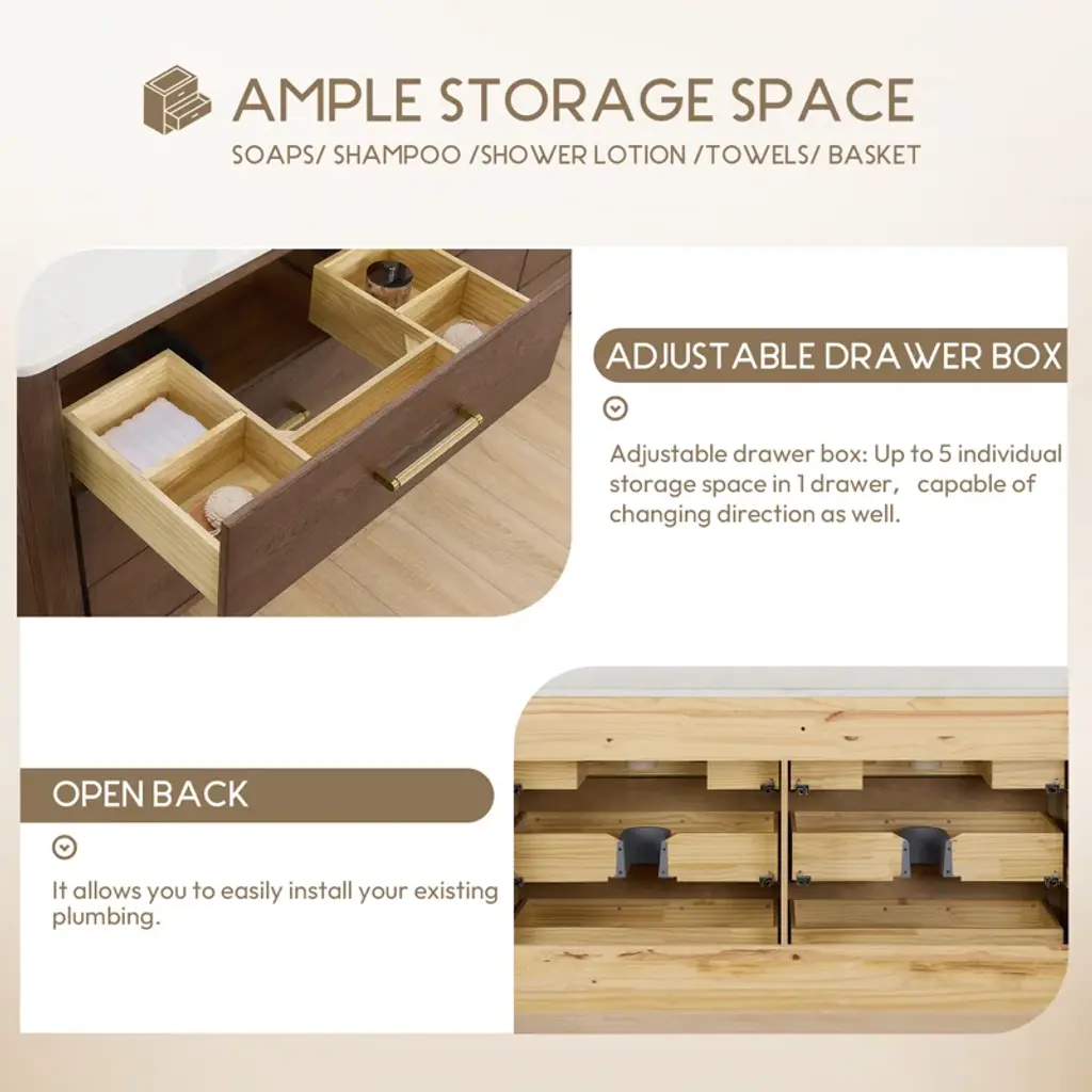 Transform your bathroom into a haven of style and sophistication with our Porto series freestanding bathroom vanity—a piece that embodies fine craftsmanship and everyday practicality. This exquisite vanity combines the textured warmth and elegance of solid oak with pristine white quartz, resulting in a look that’s both inviting and visually captivating. Deep dovetail drawers with partitions allow you to keep your essentials concealed and organized.