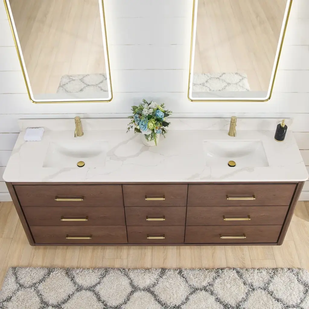 Transform your bathroom into a haven of style and sophistication with our Porto series freestanding bathroom vanity—a piece that embodies fine craftsmanship and everyday practicality. This exquisite vanity combines the textured warmth and elegance of solid oak with pristine white quartz, resulting in a look that’s both inviting and visually captivating. Deep dovetail drawers with partitions allow you to keep your essentials concealed and organized.