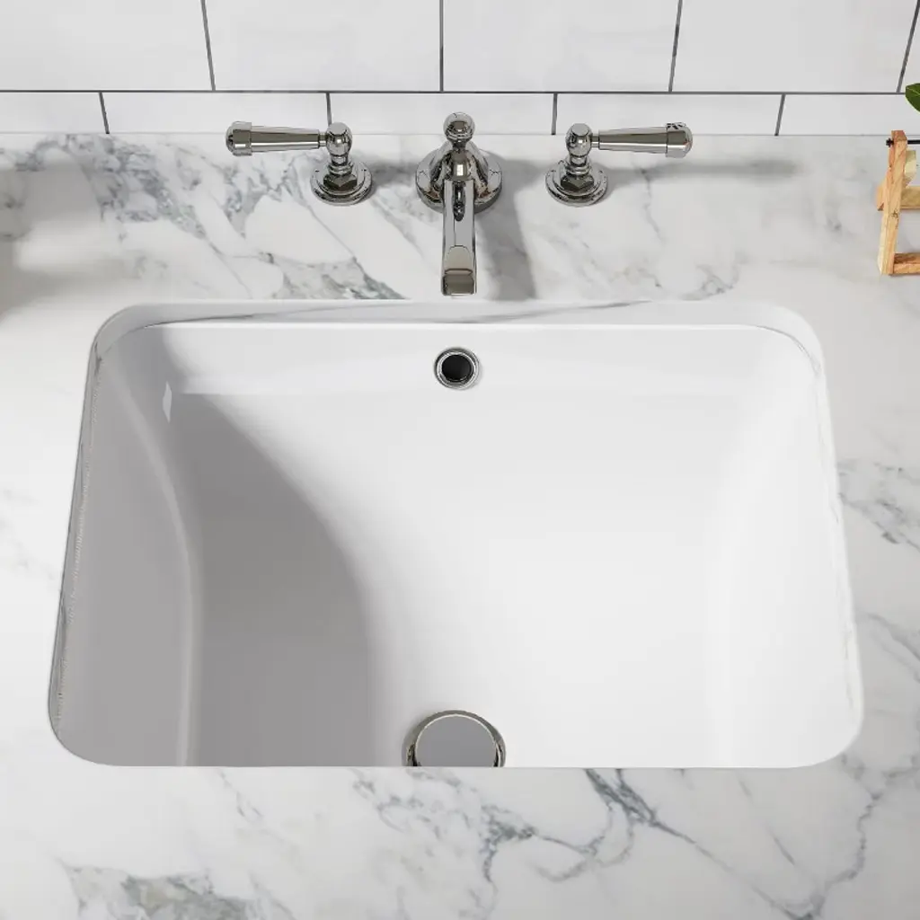 Rectangular Under The Counter Bathroom Sink Pure White Porcelain Ceramic Vessel Sink, 20"x15"x8" Under The Counter Bathroom Vanity Basin