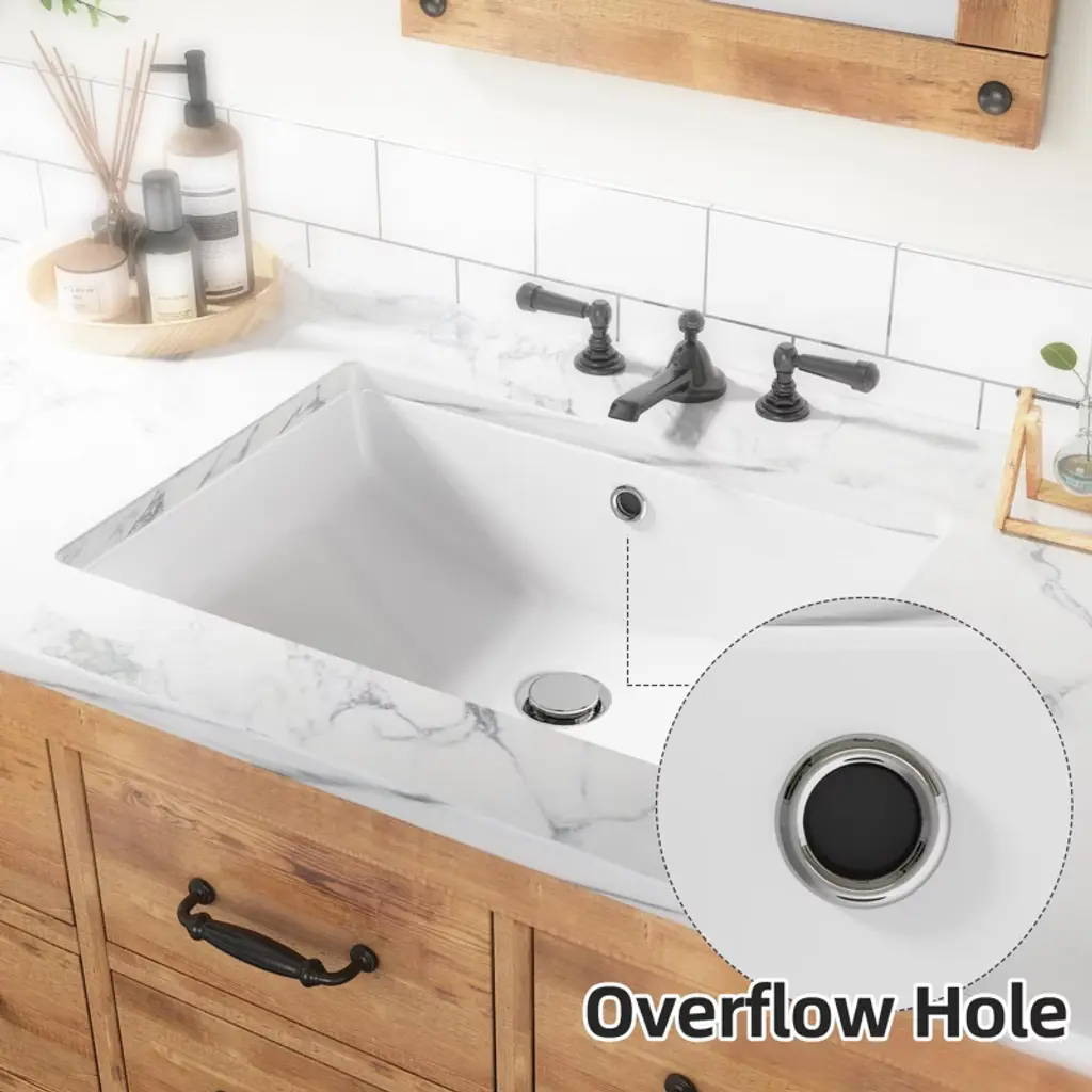 Rectangular under the Counter Bathroom Sink Pure White Porcelain Ceramic Vessel Sink, 20"x15"x8" under the Counter Bathroom Vanity Basin