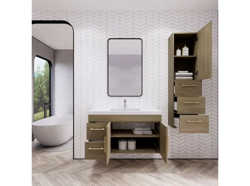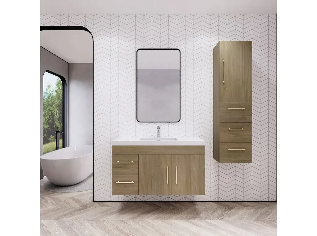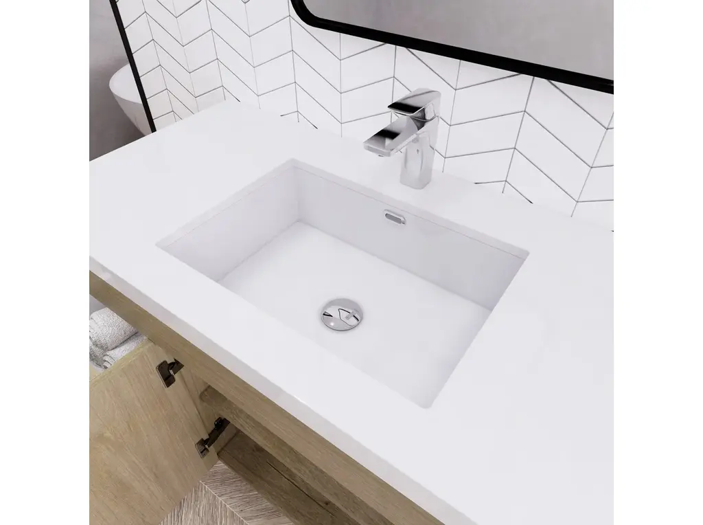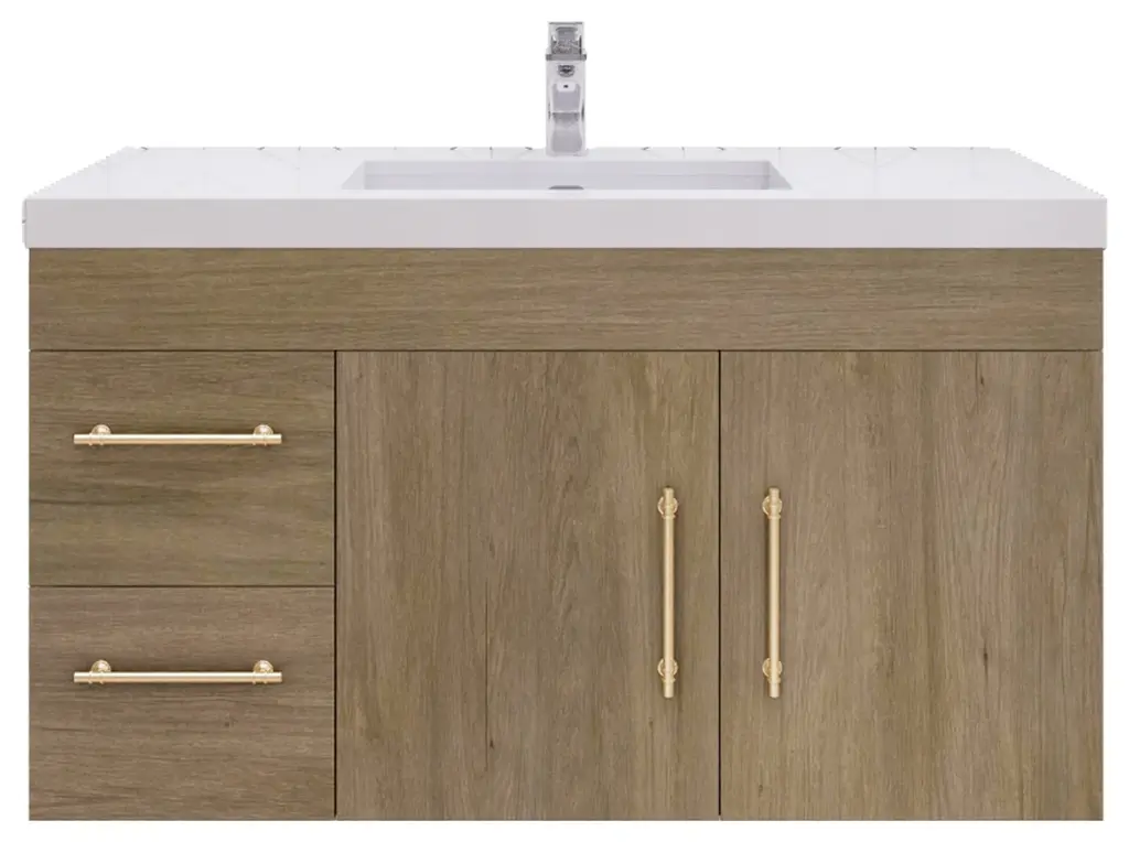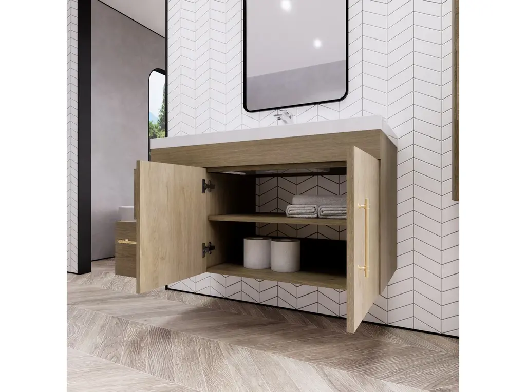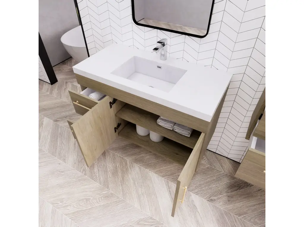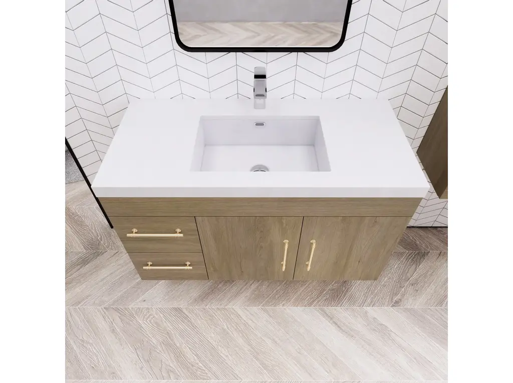 Rosa 42" Wall Mounted Vanity With Reinforced Acrylic Sink (Left Side Drawers), White Oak