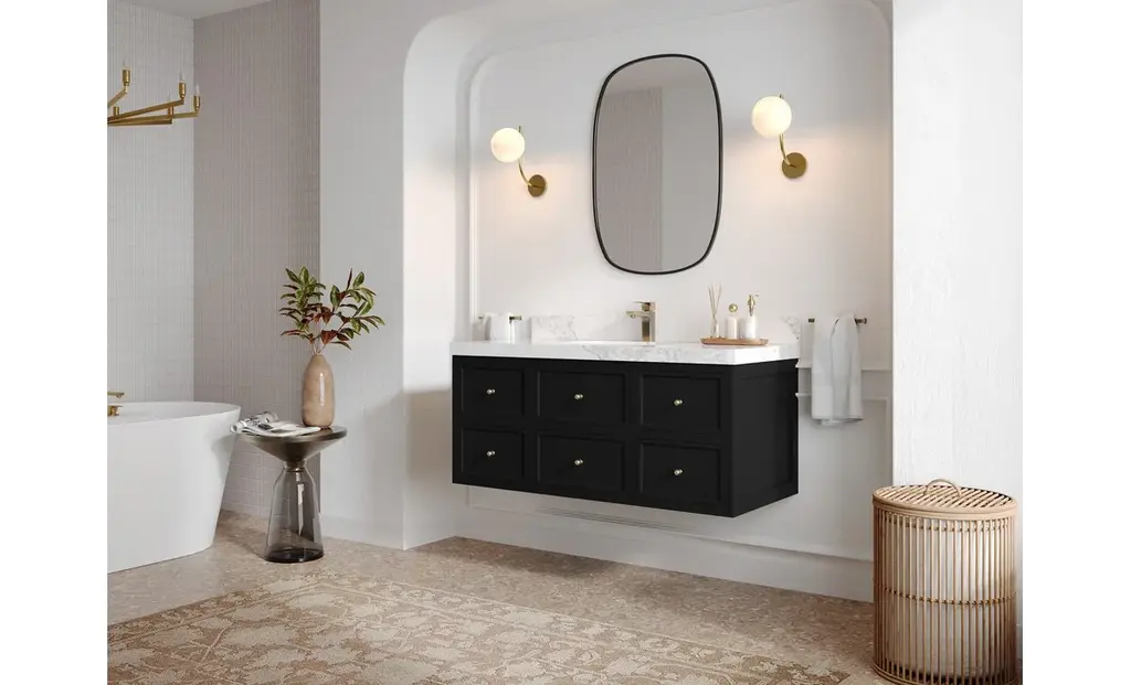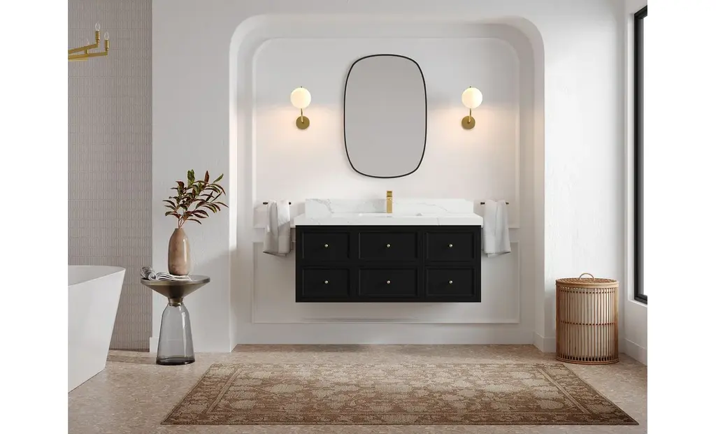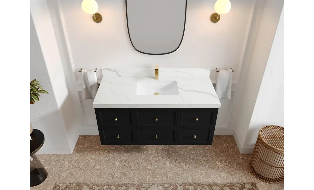 Roswell Floating 48" Single Sink Bath Vanity, Black 2" Calacatta Laza