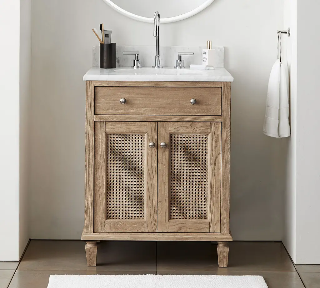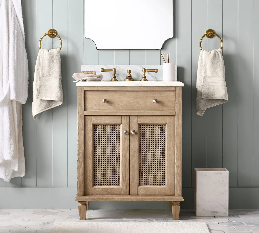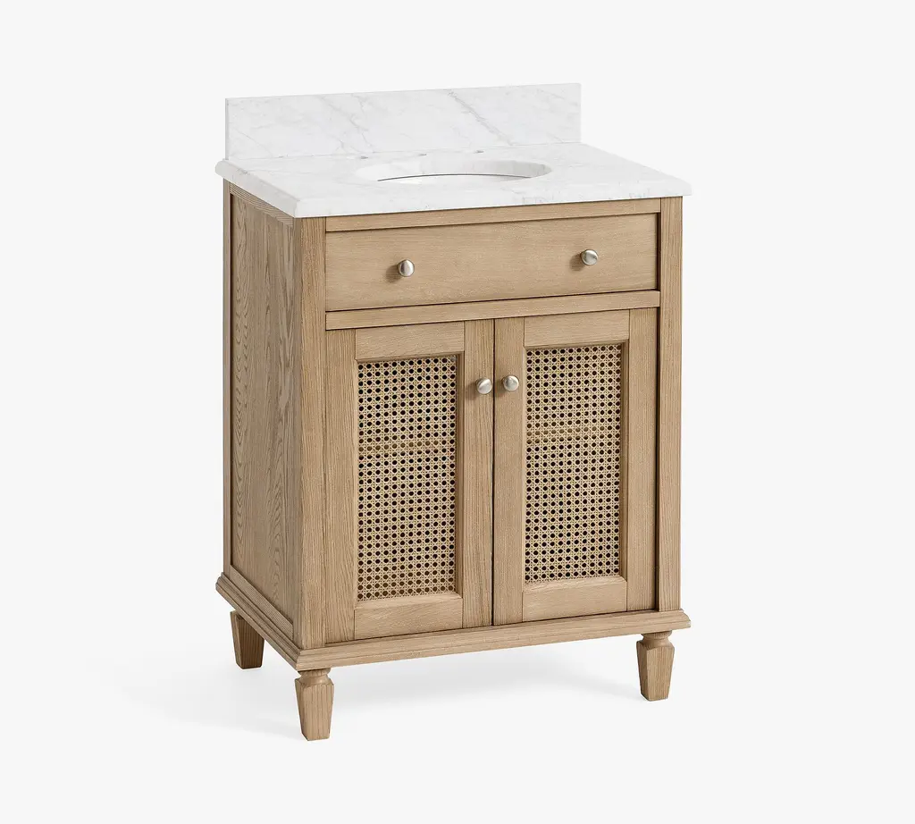 With airy cane detailing and a wood frame in our exclusive Seadrift finish, this collection exudes relaxed refinement. The natural textures combine with simple lines and traditional details for timeless look we love.
