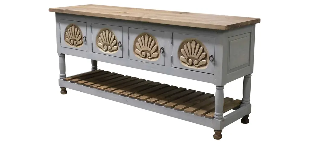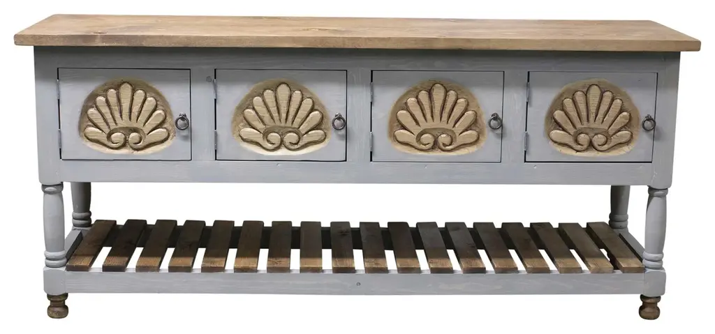 Add a unique piece to your bathroom with our Seaside Rustic Vanity! Our artisans carve each seashell design by hand which gives it that unique, one of a kind look.You might have noticed that our pieces are different than anything you've seen. Every piece made by FoxDen is handmade, for you, when you order it. What makes us different is that most of our designs have actually come from collaboration with our customers...what they loved mixed with what they needed. While we've always focused on grassroots design, we keep our history at our core. FoxDen's home is one of the oldest cities in the United States, settled by the Spanish in 1598, which is where we get our rich blend of Spanish, Mexican and American influences! Each Piece is solid wood, made to last a lifetime.Solid Wood(Single/Double) Sink VanityStandalone VanityHand Finished: Concrete greyStyle: Rustic, SouthwestVanity With Top (Solid Wood)Ideal for Drop-in SinksSuitable for Vessel Sinks- Sink Not Included