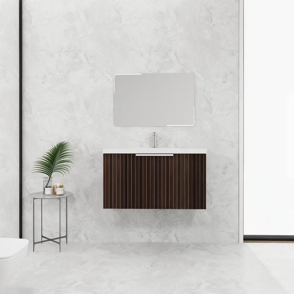 This bathroom vanity's functionality and aesthetics are defined by several key features. Ample storage, including drawers for tiny items such as toothbrushes and cabinets for large shampoo bottles or extra towels, helps maintain a neat bathroom. Vanities come in diverse styles, from modern with clean lines to traditional with ornate details, enhancing the bathroom's overall look. Sink integration, whether undermounted for a seamless appearance or above - mounted for decoration, varies. Additionally, the size of the vanity match the bathroom space for optimal functionality, whether it's a compact one for a small bathroom or a larger unit for a spacious master bathroom