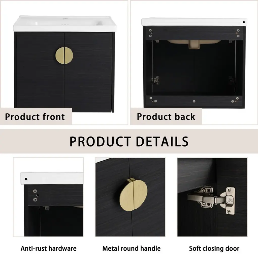 Sevobal Bathroom Storage Cabinets, Vanity, 24 Inch Bathroom Vanity With Sink, Wall Mounted Bathroom Sink Cabinet With Metal Handle, Small Bathroom