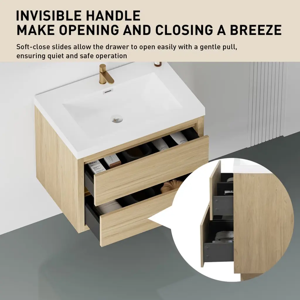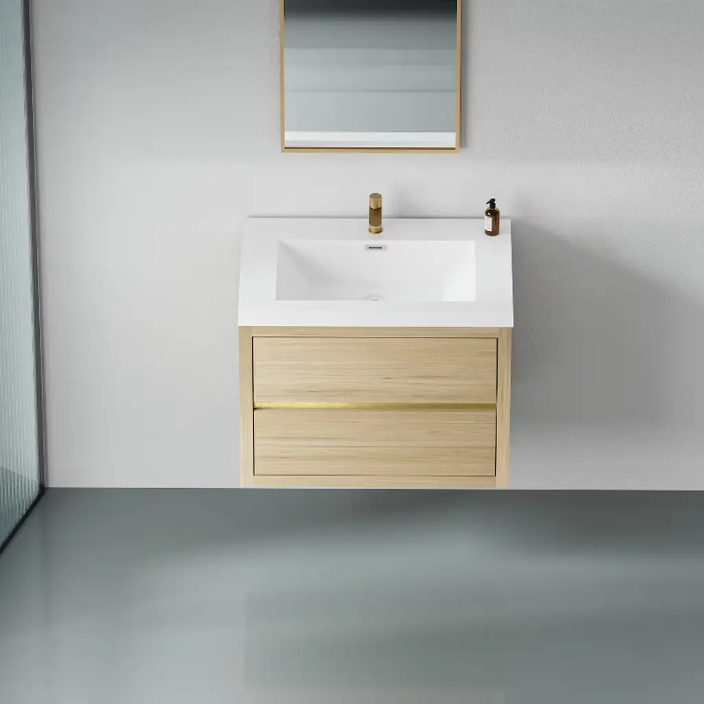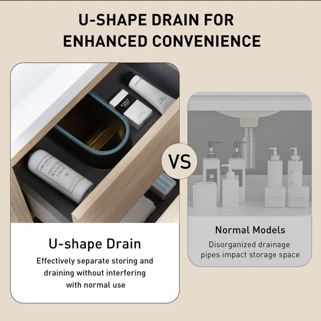 This bathroom vanity's functionality and aesthetics are defined by several key features. Ample storage, including drawers for tiny items such as toothbrushes and cabinets for large shampoo bottles or extra towels, helps maintain a neat bathroom. Vanities come in diverse styles, from modern with clean lines to traditional with ornate details, enhancing the bathroom's overall look. Sink integration, whether undermounted for a seamless appearance or above - mounted for decoration, varies. Additionally, the size of the vanity match the bathroom space for optimal functionality, whether it's a compact one for a small bathroom or a larger unit for a spacious master bathroom