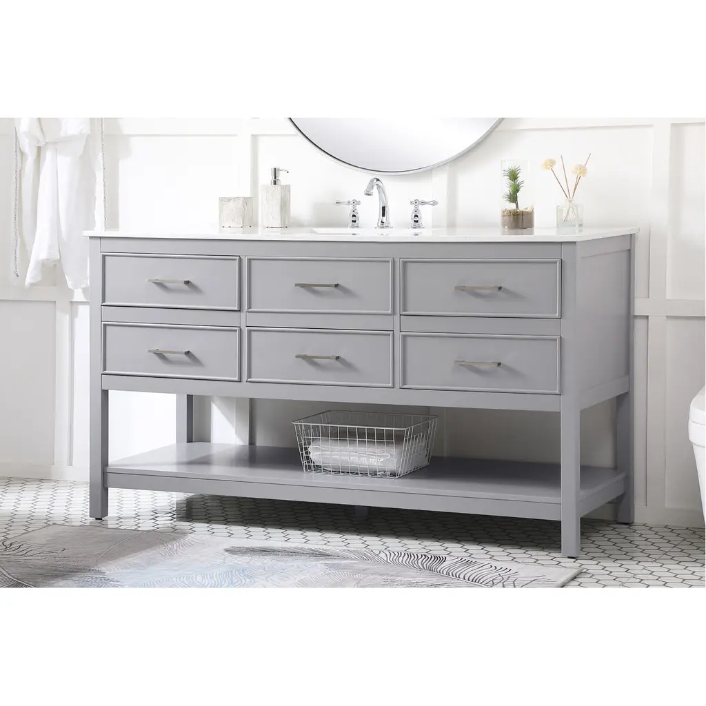 Sinclaire 60 X 22 X 34 Inch Gray Vanity Sink Set