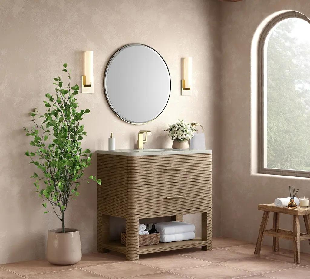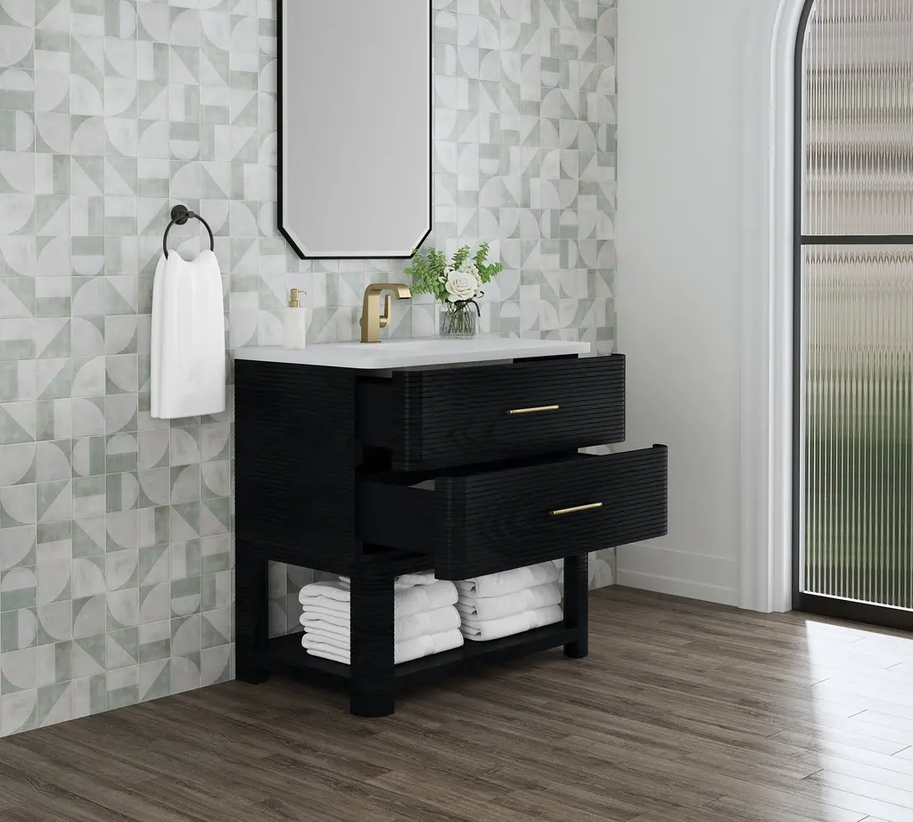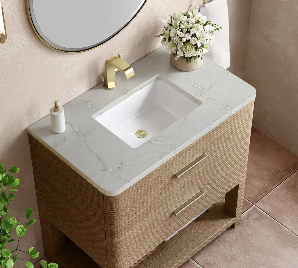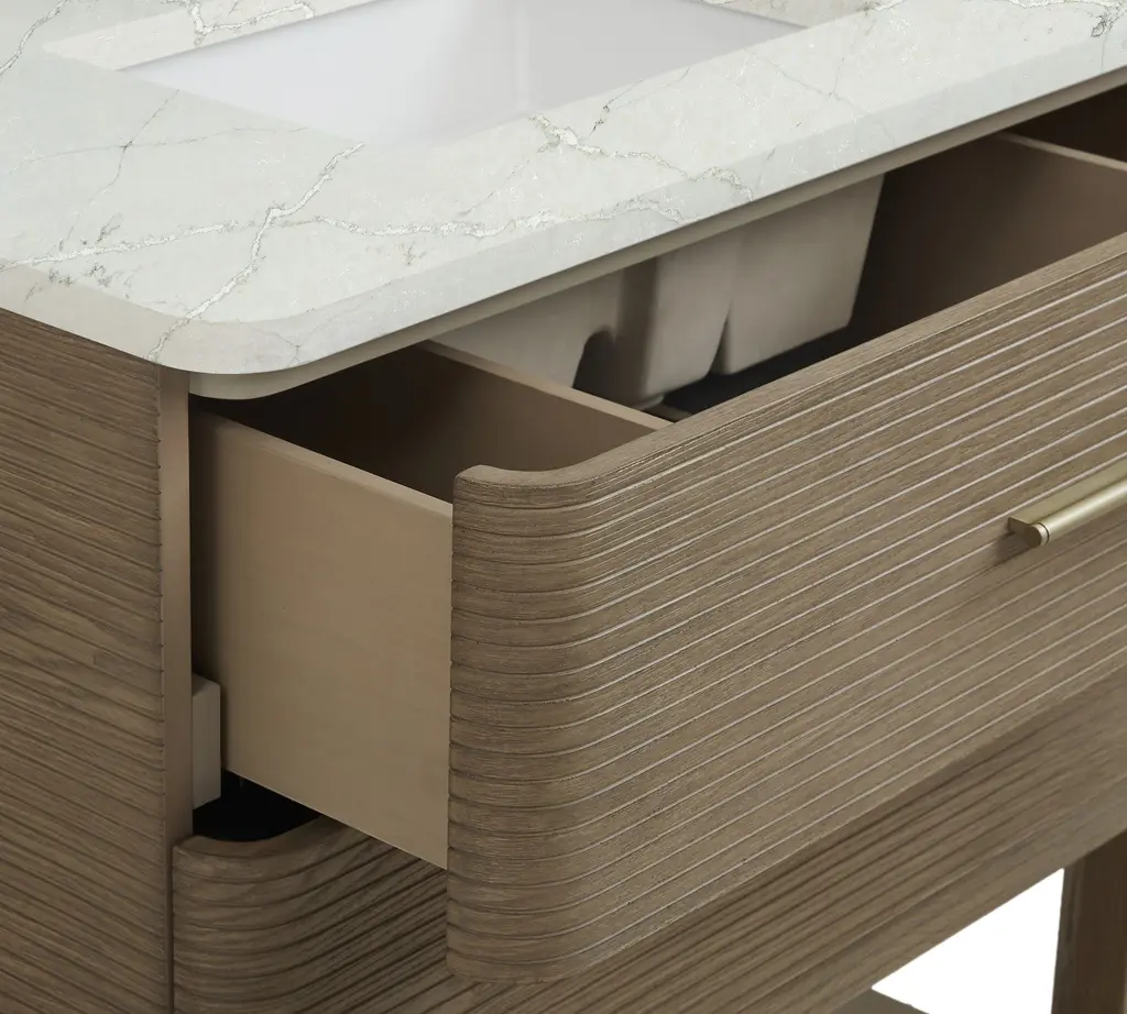 Transform your space with the Sobrato Collection, a masterpiece inspired by the French Art Deco movement. This collection reinvents the console-style vanity, seamlessly blending clean lines and gentle curves with radius corners and ribbed details.