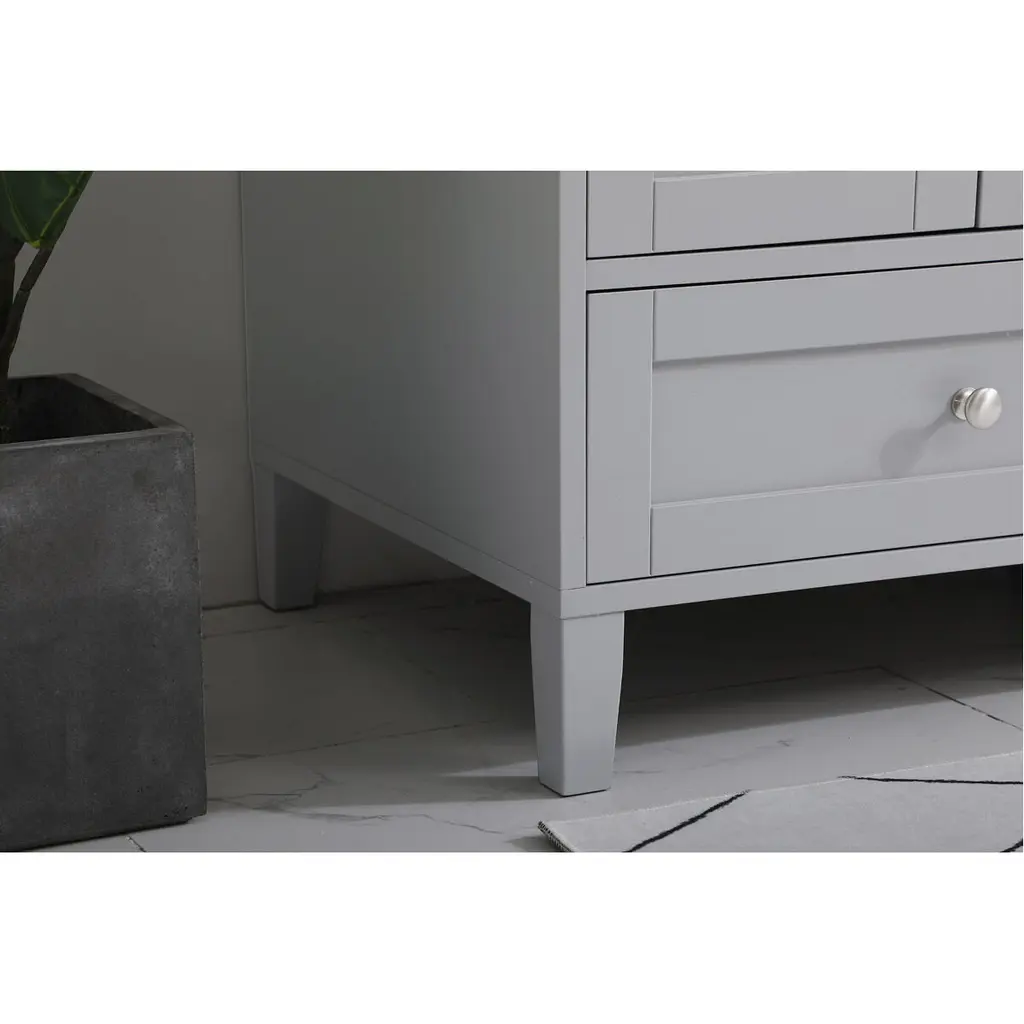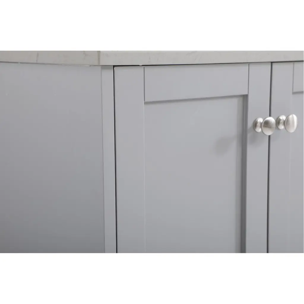 While unassuming, this 48" double sink vanity in a grey finish sure knows how to redefine luxury. The sleek brushed nickel knobs adorn the 4 cabinet doors and 4 drawers which allow you to store your bathroom toiletries and necessities. Standing strong on oblique legs and dressed with a Calacatta quartz countertop, this vanity will surely create beauty and casual elegance in your bathroom or powder room.