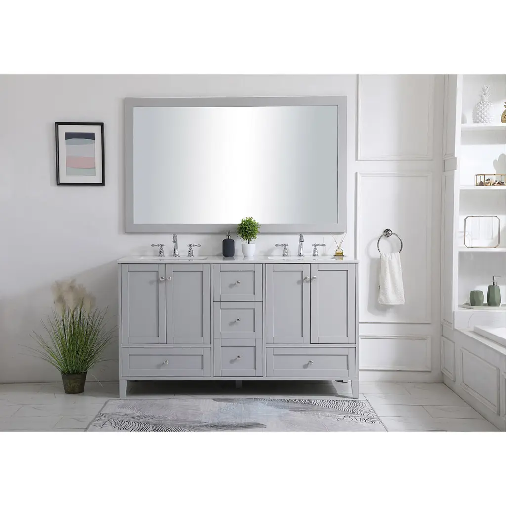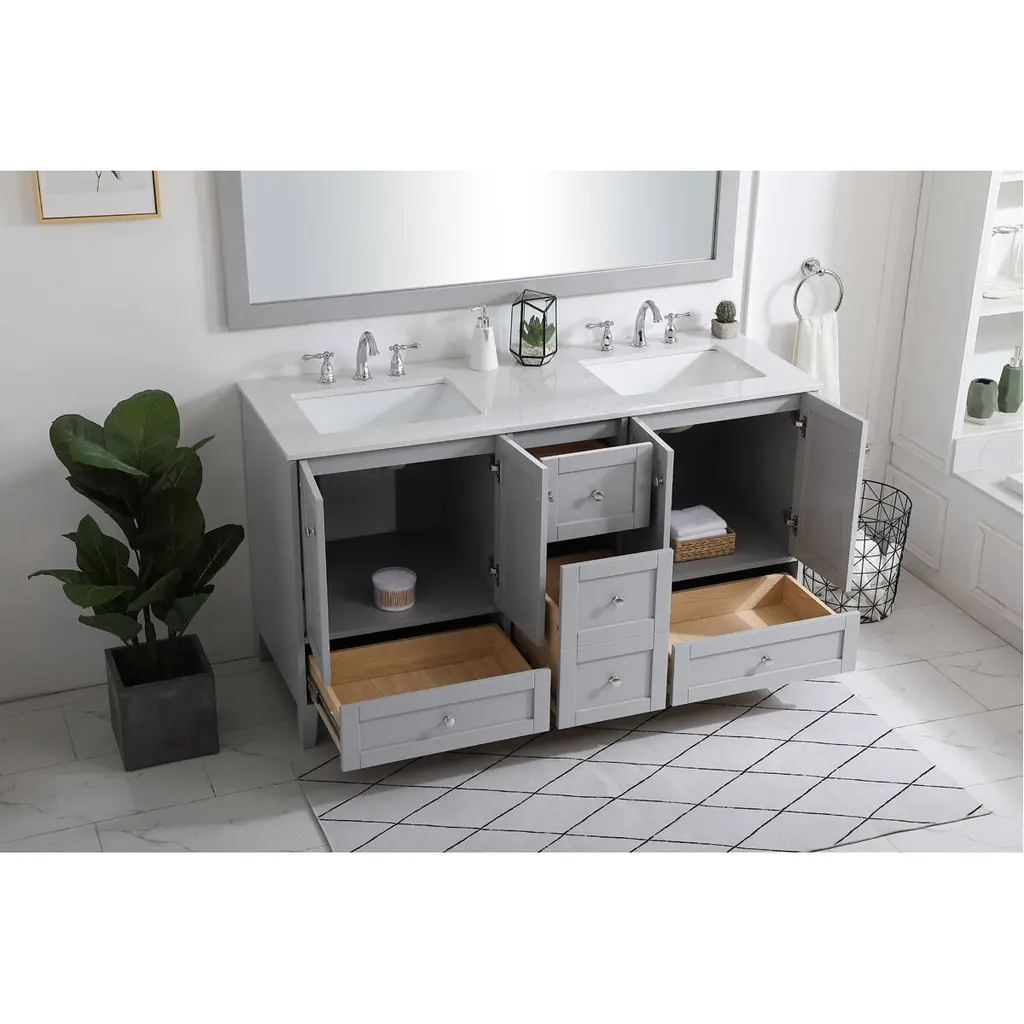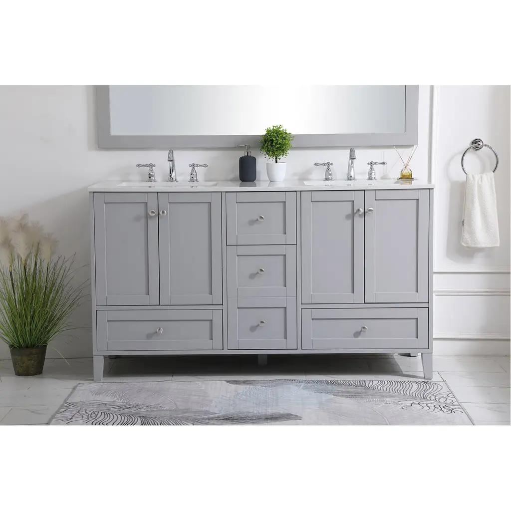 Sommerville 60 X 22 X 34 Inch Grey And Brushed Nickel With Calacatta Quartz Vanity Sink Set