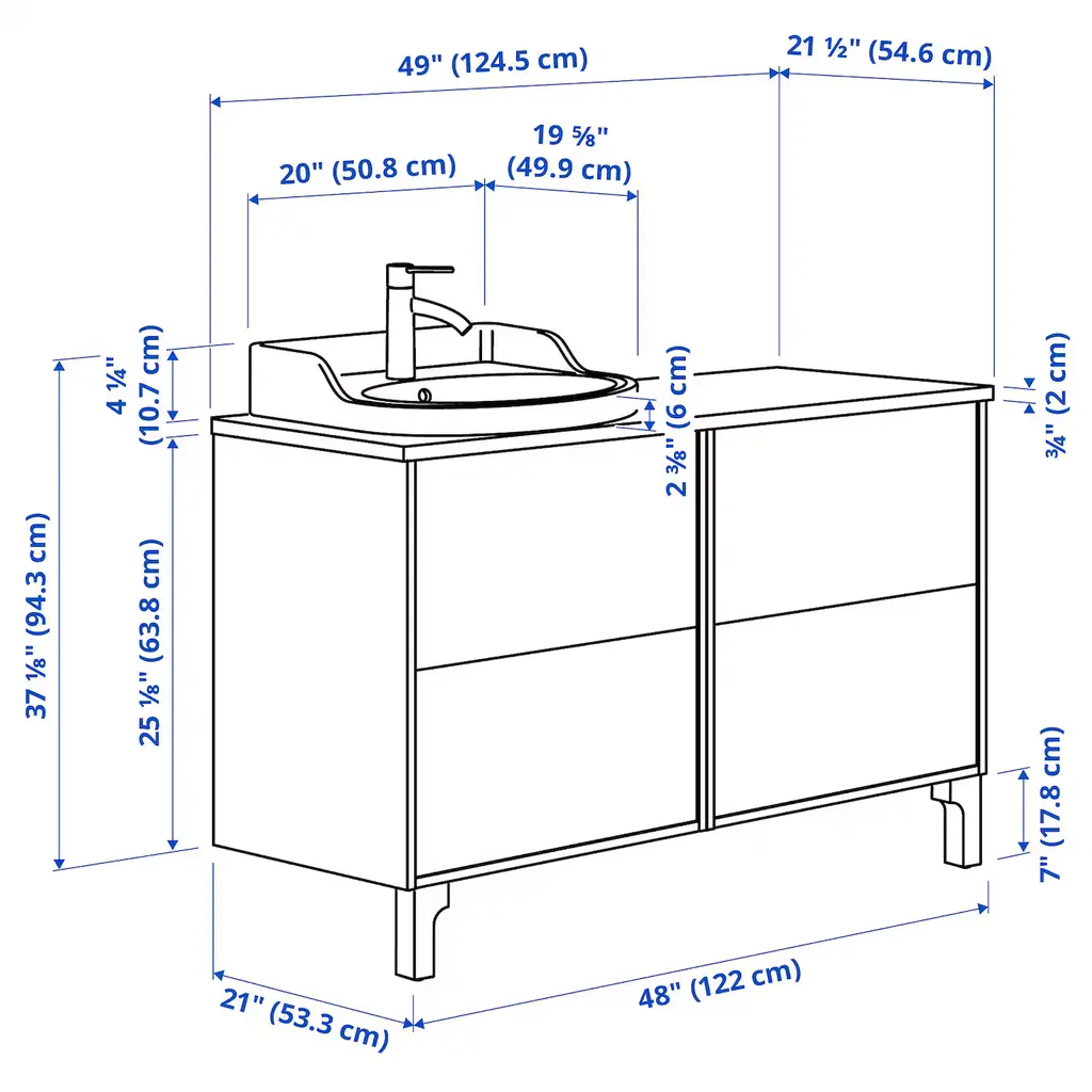 TÄNNFORSEN / RUTSJÖN Bathroom vanity with sink & faucet - light gray/brown walnut effect 49x21 1/2x37 1/8 ". Depending on your space and needs, complete this solution with your choice of a mirror or mirror cabinet from our range, sold separately. This product bears the CE mark.