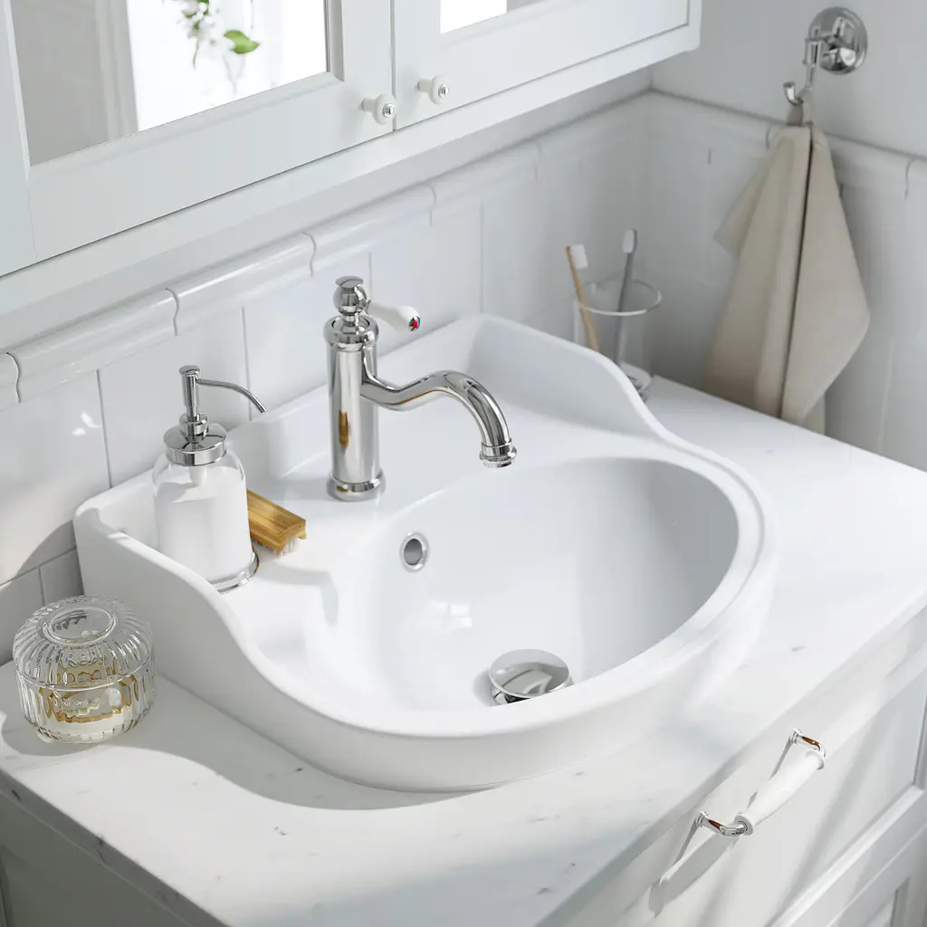 TÄNNFORSEN / RUTSJÖN Bathroom vanity with sink & faucet - light gray/brown walnut effect 61x21 1/2x37 1/8 ". Depending on your space and needs, complete this solution with your choice of a mirror or mirror cabinet from our range, sold separately. This product bears the CE mark.