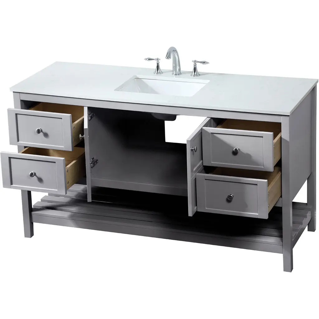 Theo 60 X 22 X 34 Inch Grey Vanity Sink Set