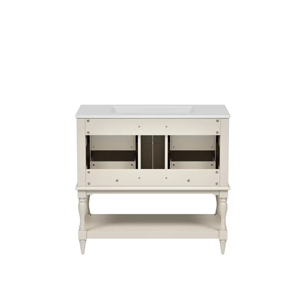 Tramull Beige Bathroom Vanity Set With Undermount Ceramic Sink, 4-drawer Solid Wood Frame Cabinet, Freestanding Storage