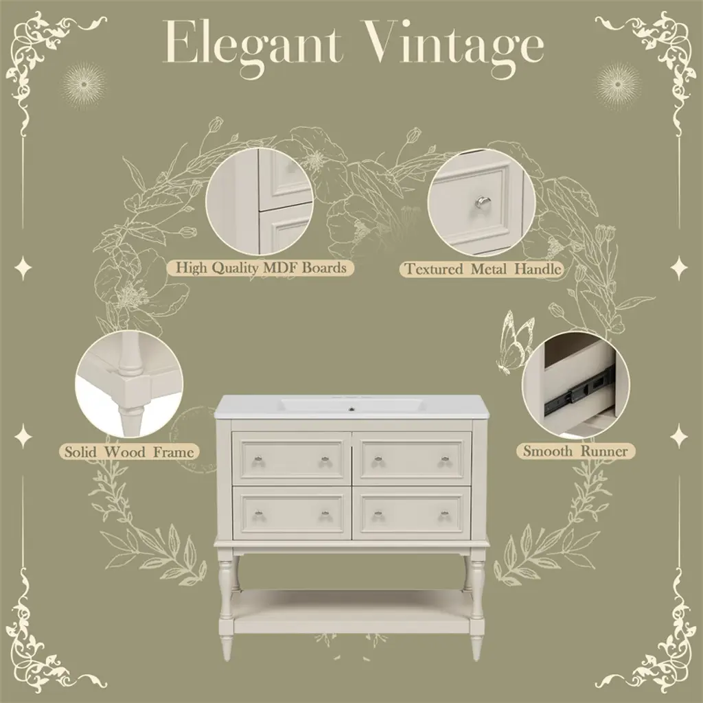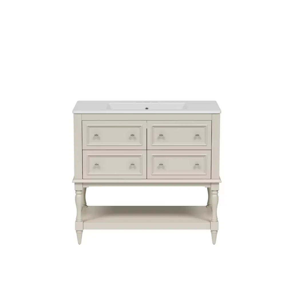 Tramull Beige Bathroom Vanity With Undermount Sink, 4-drawer Storage Cabinet, Solid Wood Frame Freestanding Vanity Set
