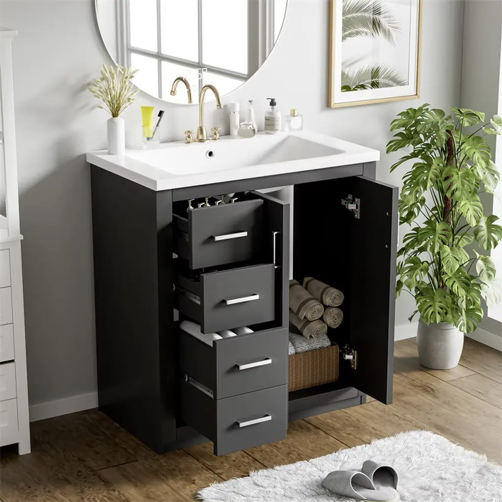 Tramull Black Bathroom Vanity With Sink, Soft Closing Drawers & Storage Cabinet, Solid Wood Frame Freestanding Vanity Set