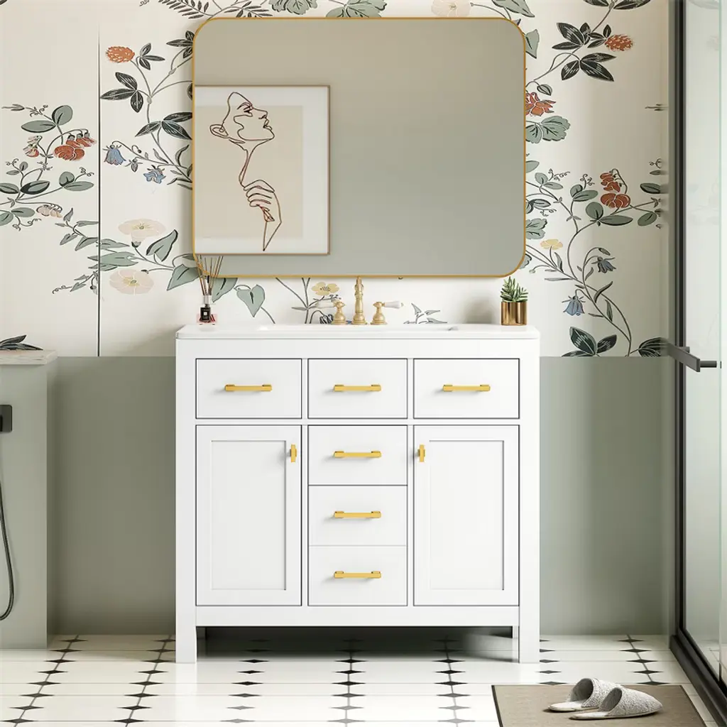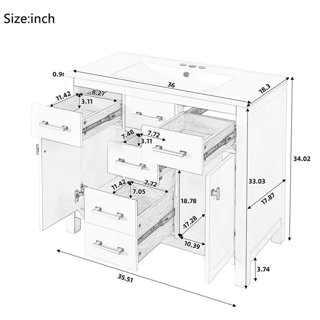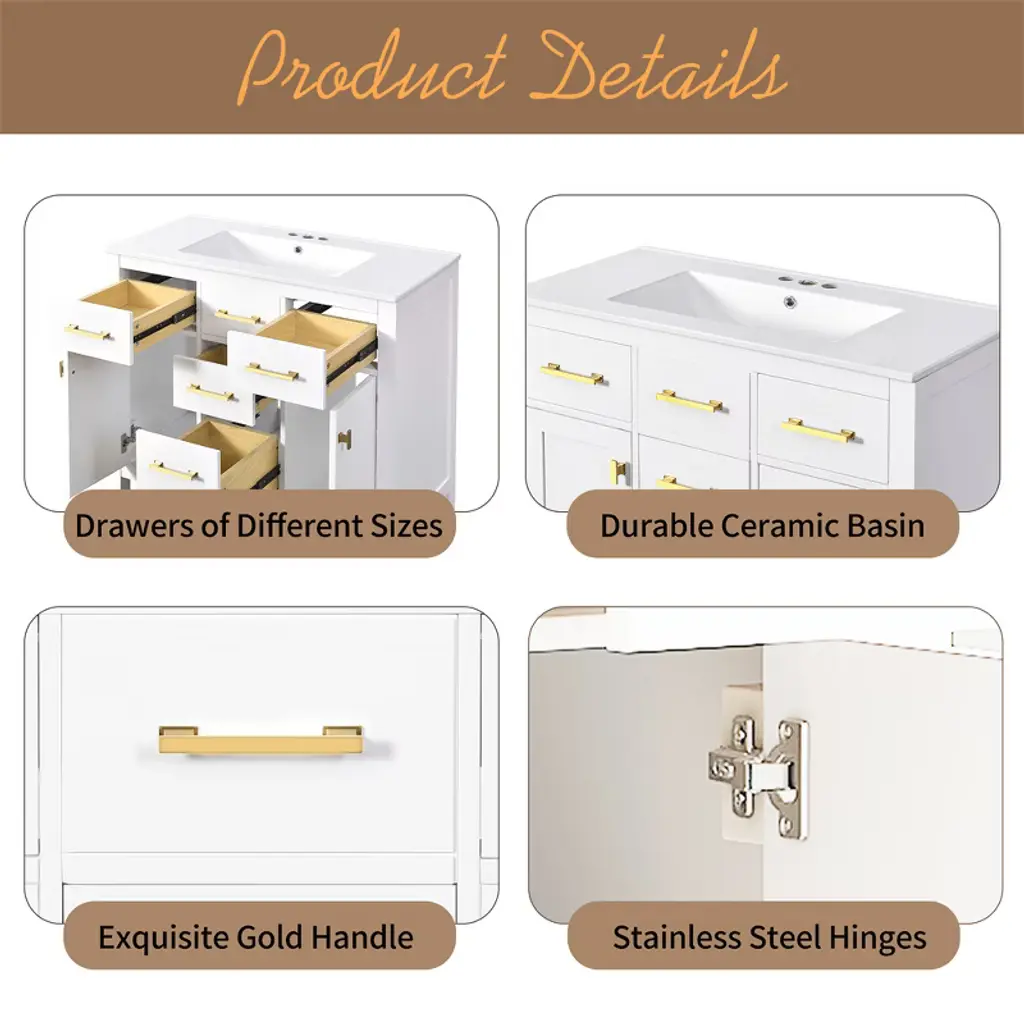 Built for durability and easy care, this vanity features a solid pine wood frame, wear-resistant MDF doors/drawers, and a glossy ceramic basin. The ceramic sink¡¯s smooth surface simplifies cleaning, while the sturdy materials ensure long-lasting use in humid bathroom environments.