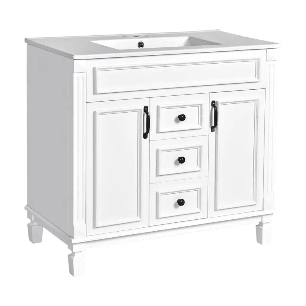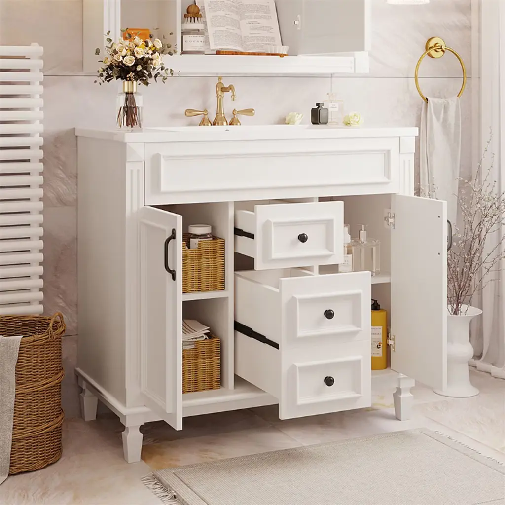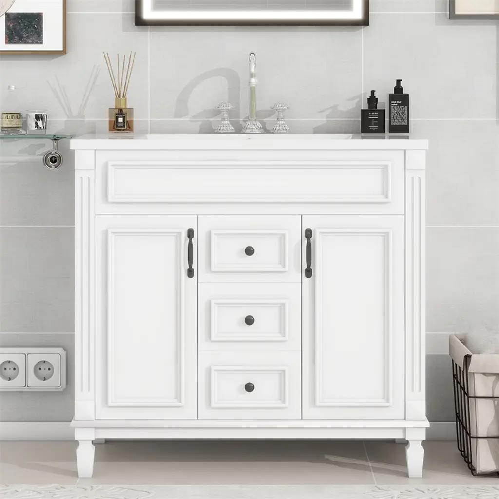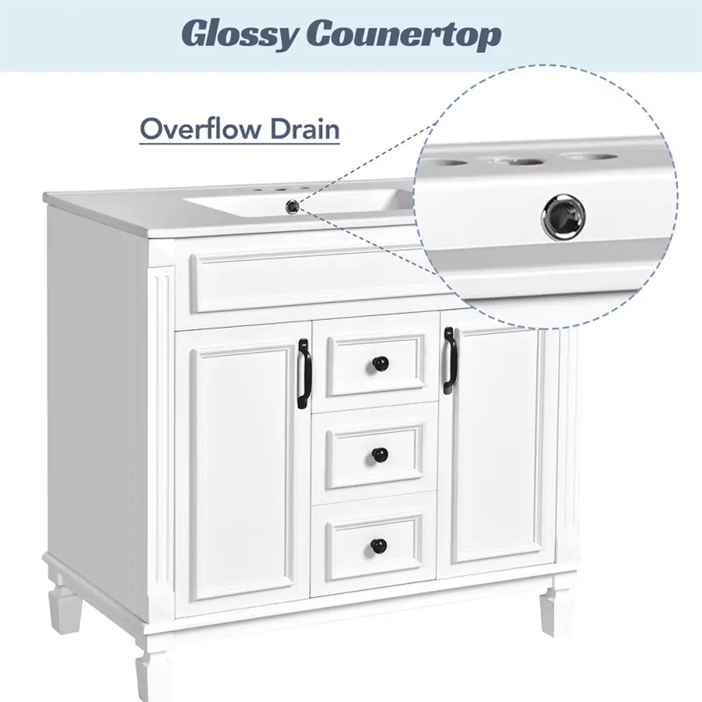 Tramull White Modern Bathroom Vanity With Sink Top, 2 Soft-closing Doors & 2 Drawers, Single Basin Storage Cabinet, Easy Assembly