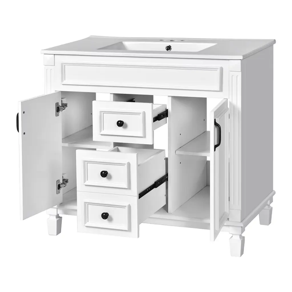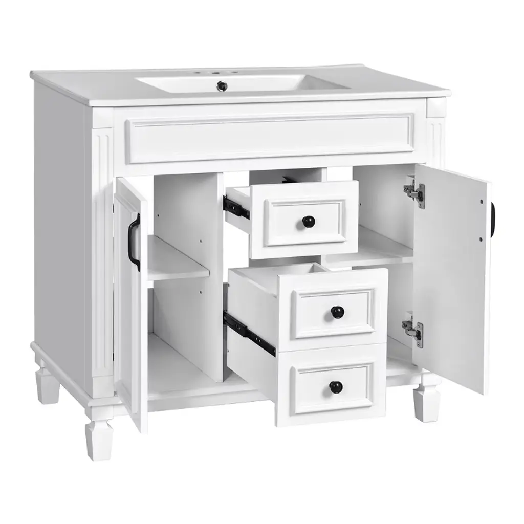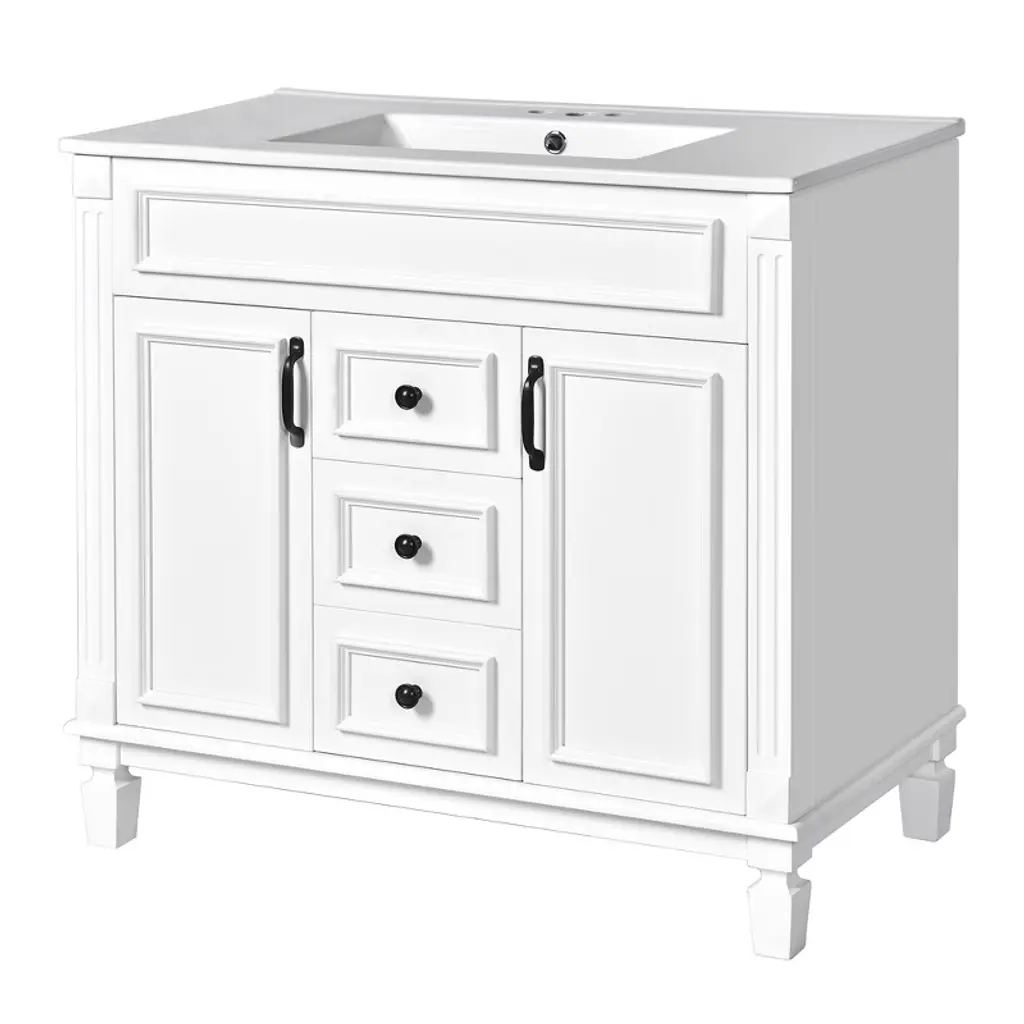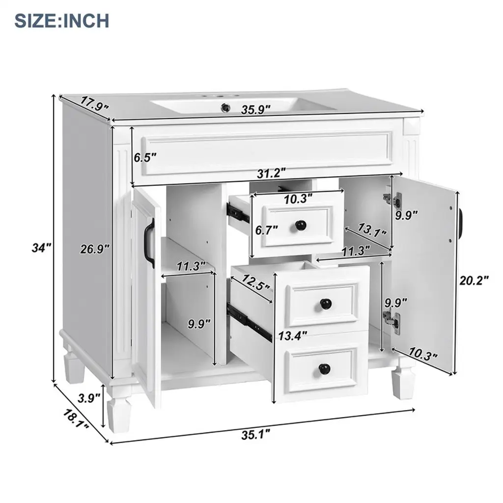 Tramull White Modern Bathroom Vanity With Sink Top, 2 Soft-closing Doors & 2 Drawers, Single Basin Storage Cabinet, Easy Assembly