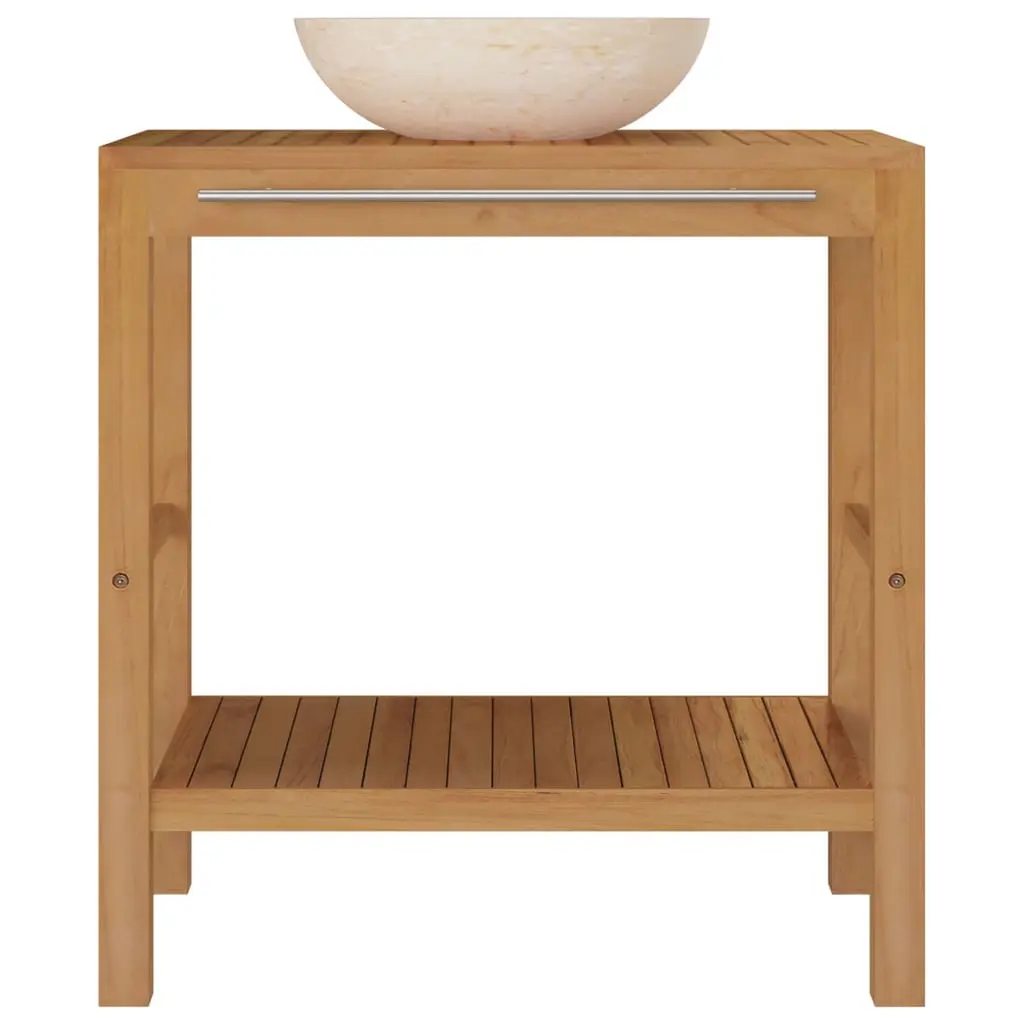 This contemporary bathroom vanity cabinet combines functionality with a sophisticated design, making it an ideal addition to any modern bathroom. The stunning cream and natural brown tones create a soothing atmosphere, while the solid teak wood construction provides durability and stability, allowing for everyday use while enhancing your bathroom decor. The sturdy solid teak wood frame is made to last, ensuring this cabinet remains a standout piece in your bathroom for years. The elegant marble top adds a touch of luxury, providing a smooth and easy-to-clean surface that beautifully contrasts with the warm wood tones. With a handy drawer and shelf, it’s easy to store all your bathroom essentials, from makeup to towels, keeping your space organized and stylish. Its freestanding design allows for flexible placement in any indoor bathroom layout, easily adapting to your space. Simple care instructions mean you can keep the cabinet looking pristine with minimal fuss, maximizing your time enjoying your beautiful bathroom.