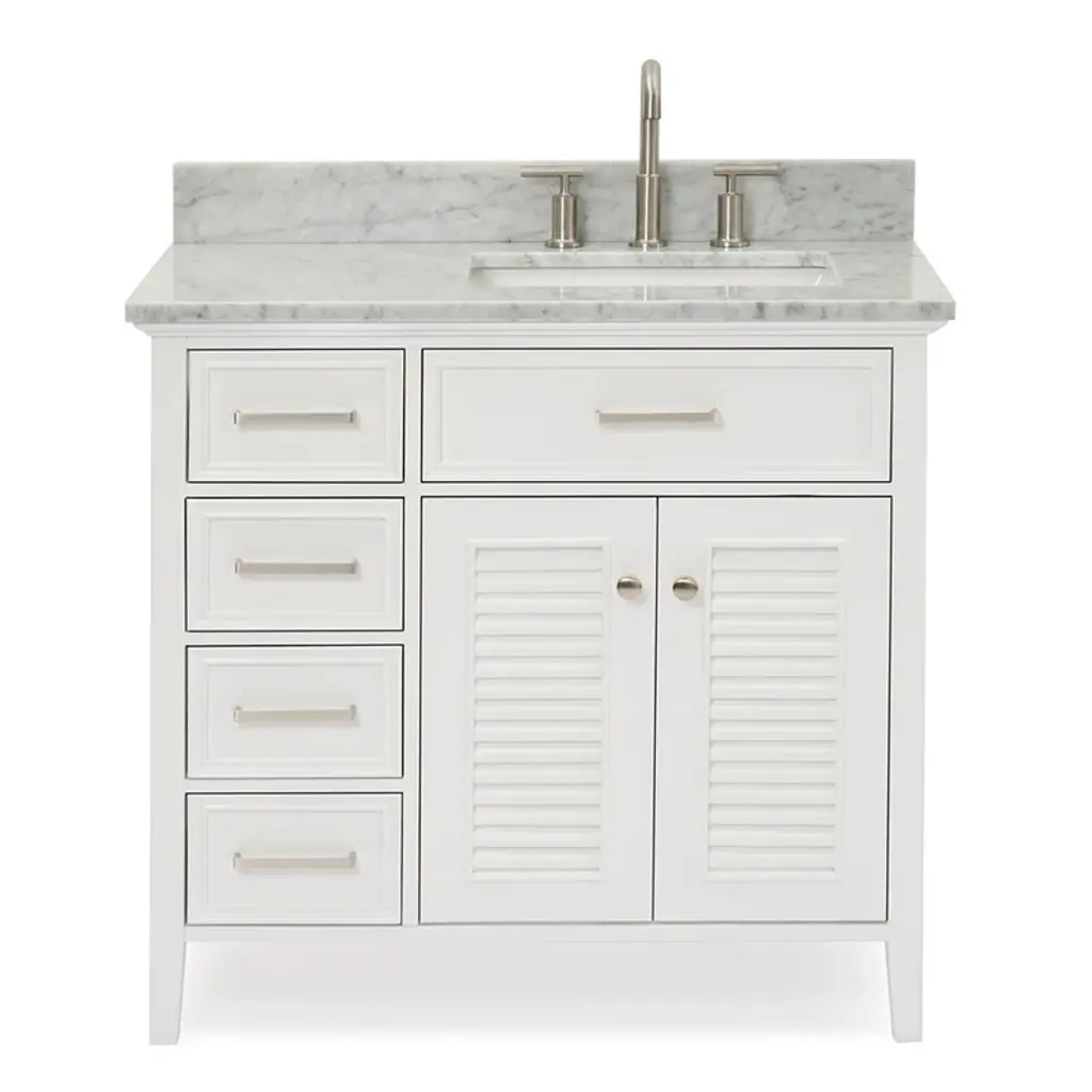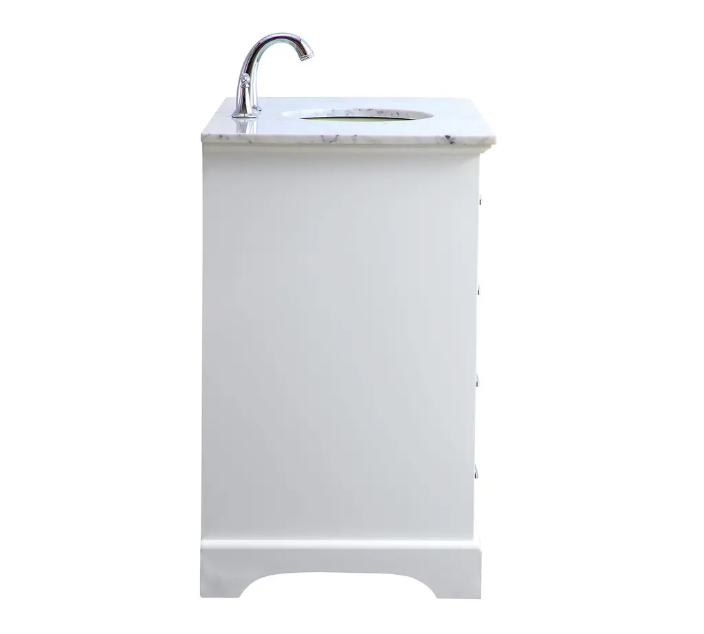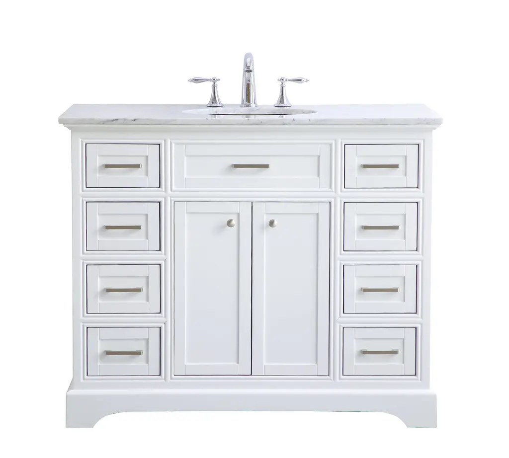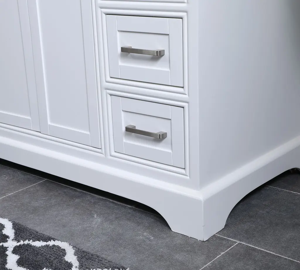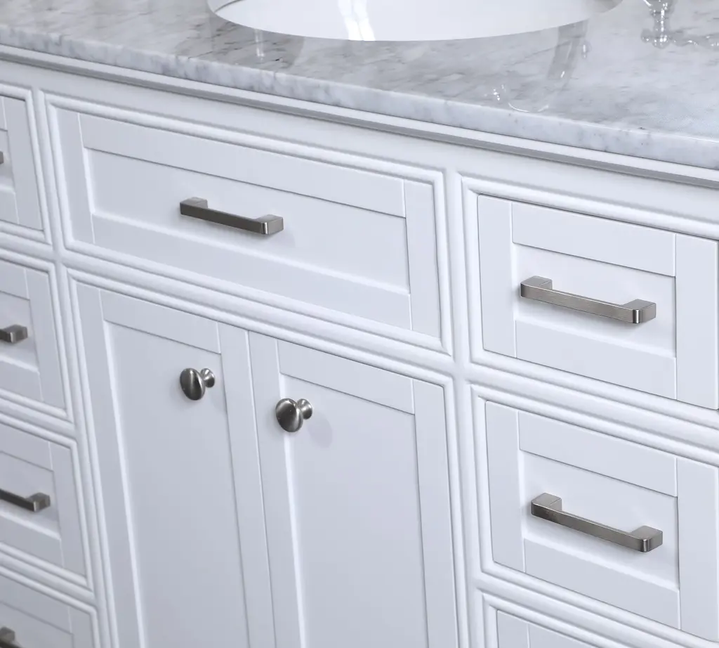 An elevated classic from top to bottom. The Carrara marble adds a touch of sophistication to this vanity, showcasing beautiful woodworking details down to its pedestal feet. It balances enduring style and practical design – the perfect combo for a bath.