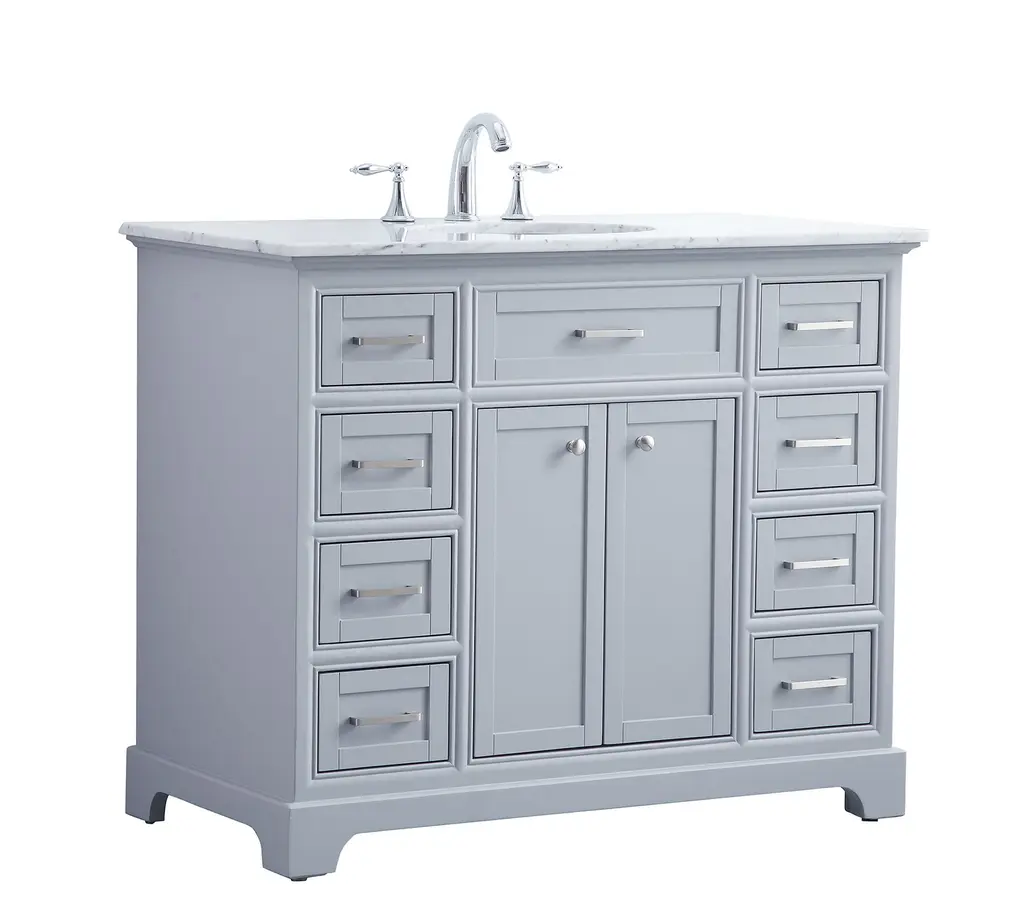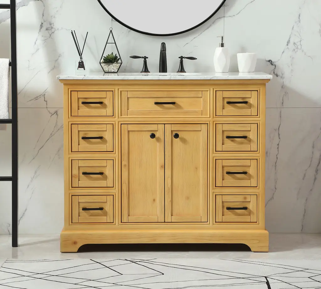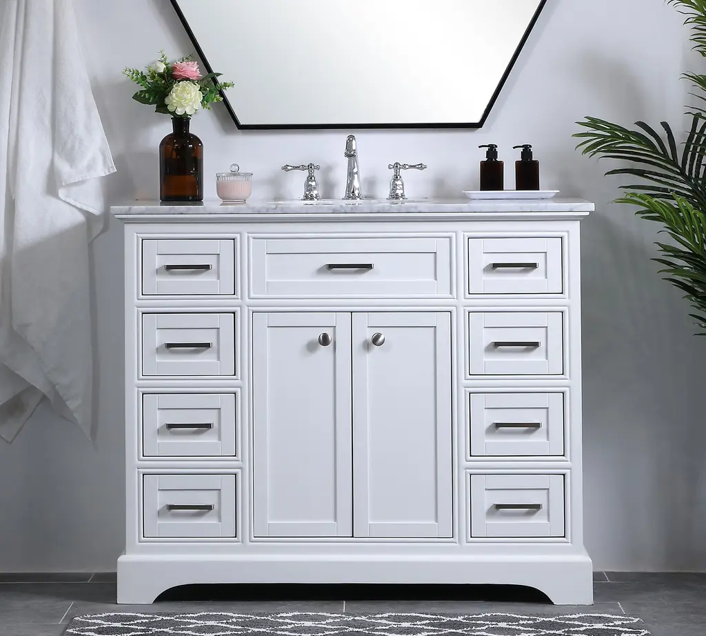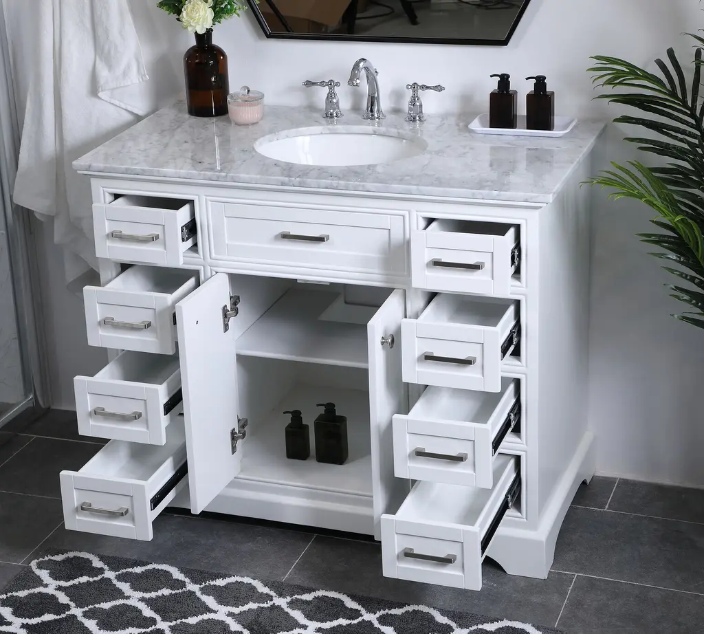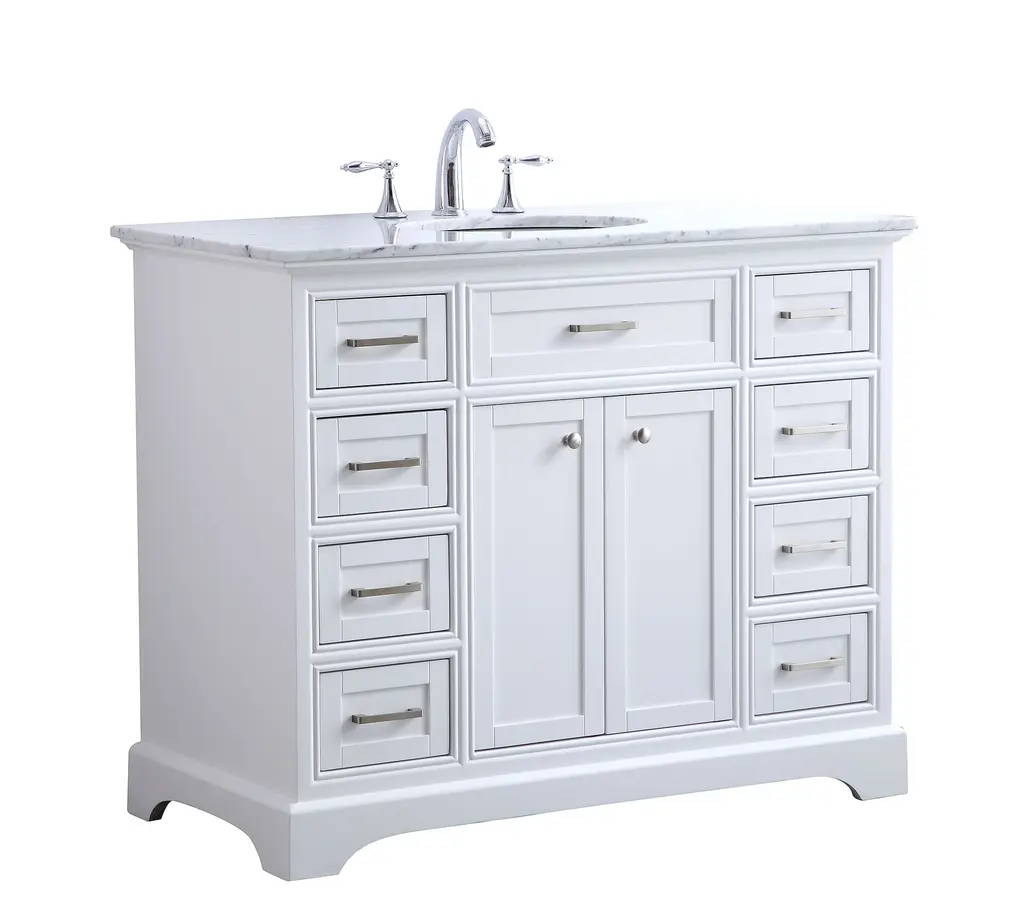 An elevated classic from top to bottom. The Carrara marble adds a touch of sophistication to this vanity, showcasing beautiful woodworking details down to its pedestal feet. It balances enduring style and practical design – the perfect combo for a bath.