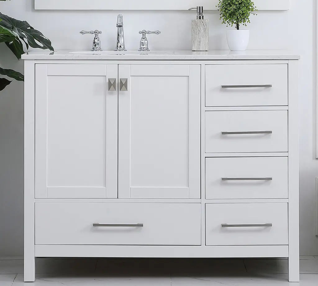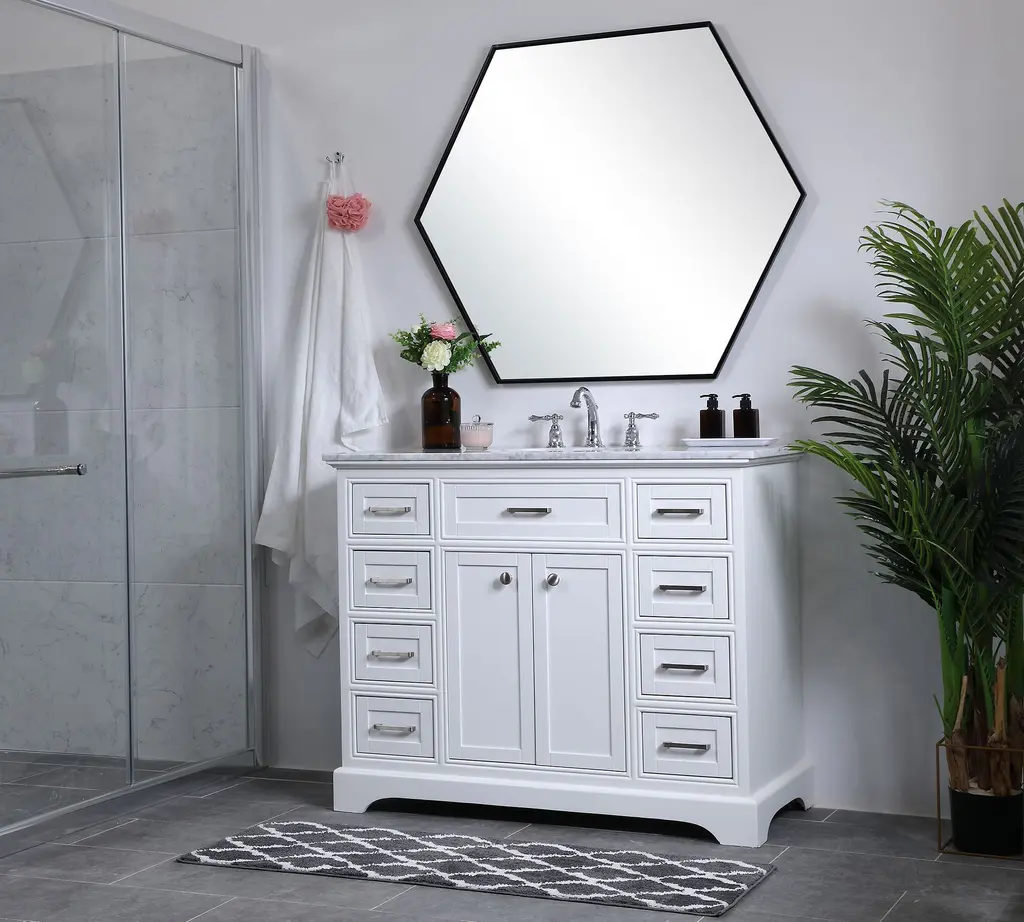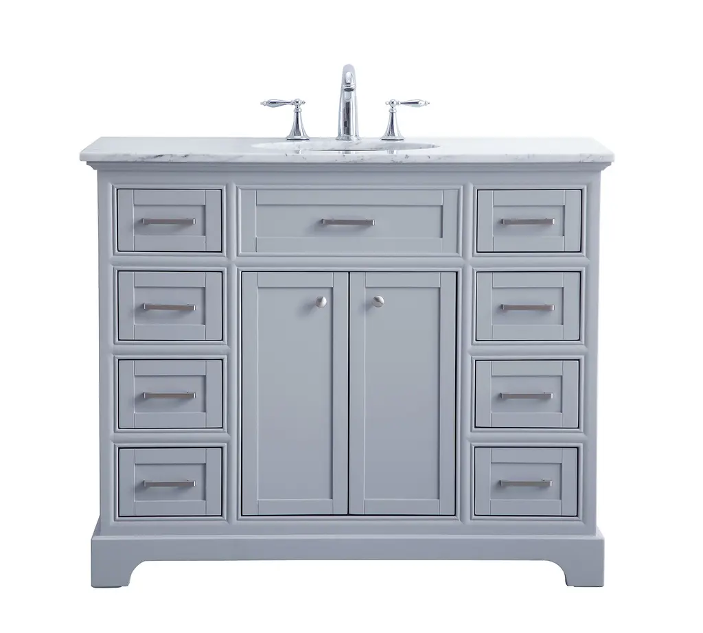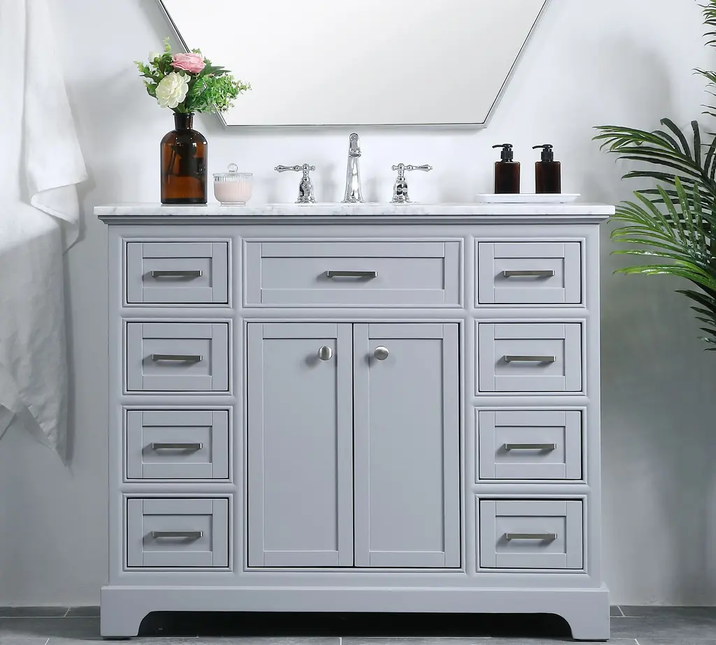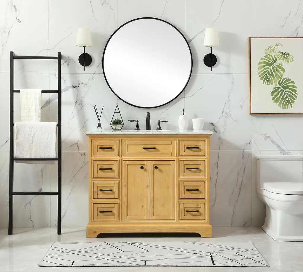 An elevated classic from top to bottom. The Carrara marble adds a touch of sophistication to this vanity, showcasing beautiful woodworking details down to its pedestal feet. It balances enduring style and practical design – the perfect combo for a bath.