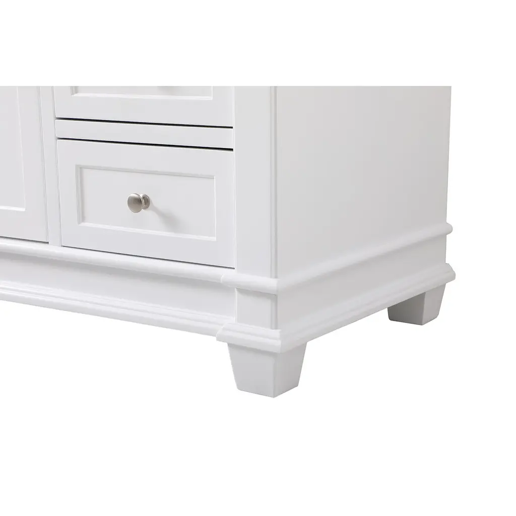 The Wesley Collection vanity cabinet will bring a settle pop of color into your bathroom. The white finish is a sophisticated color which creates a calming atmosphere in the room. The brushed nickel knobs bring a vibrant touch to balance the vanity. With the detailed engravings, the cabinet catches eyes with its beautiful lining work. Open the cabinet doors to store what you desire and make use of the spacious area. To top it off, the Carrara white marble adds a luxury and modern finish to the countertop.