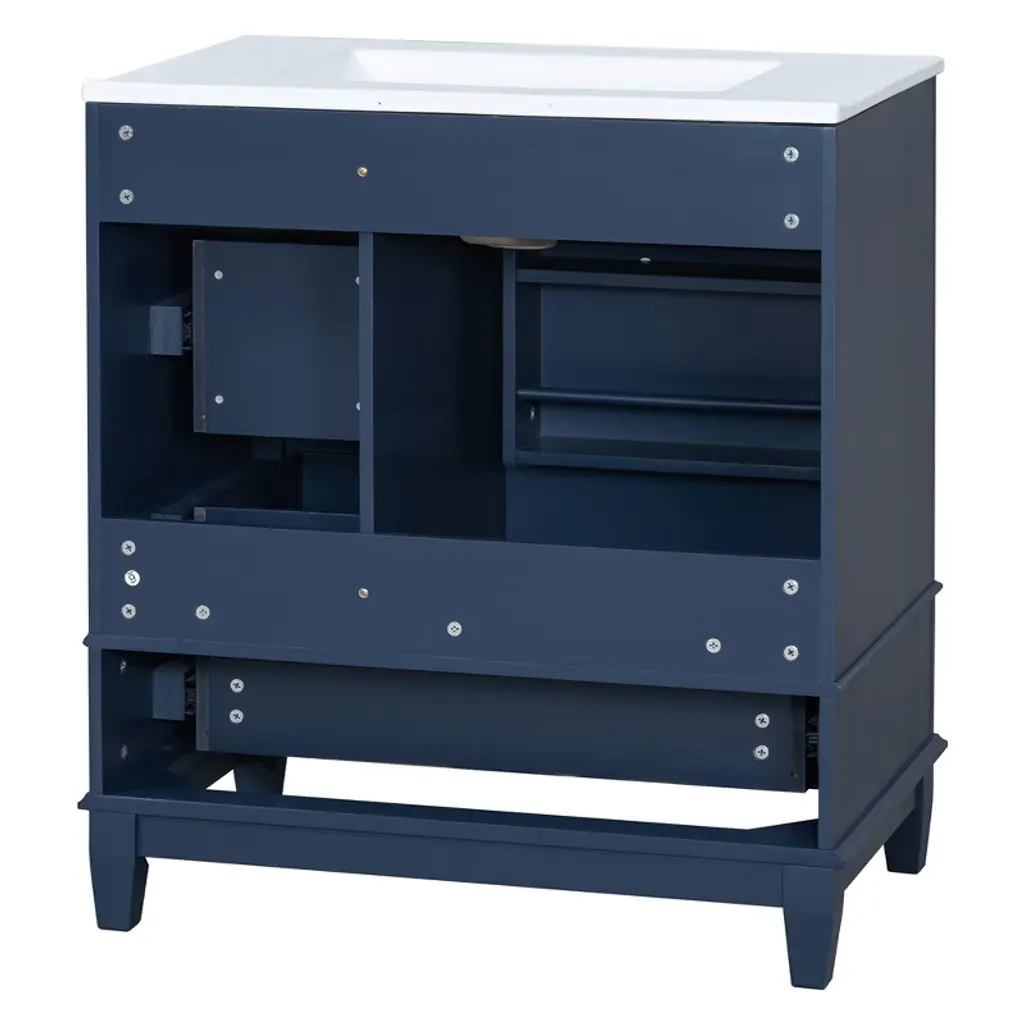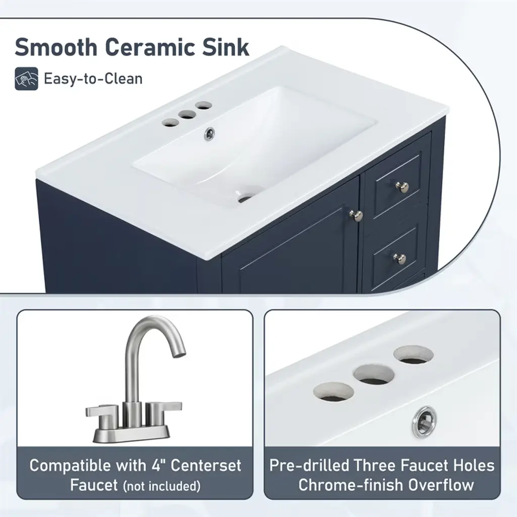 Xinghanzhenxuan Blue Bathroom Vanity With Sink & 3 Drawers, Soft-close Solid Wood Cabinet With Ceramic Sink & Ample Storage
