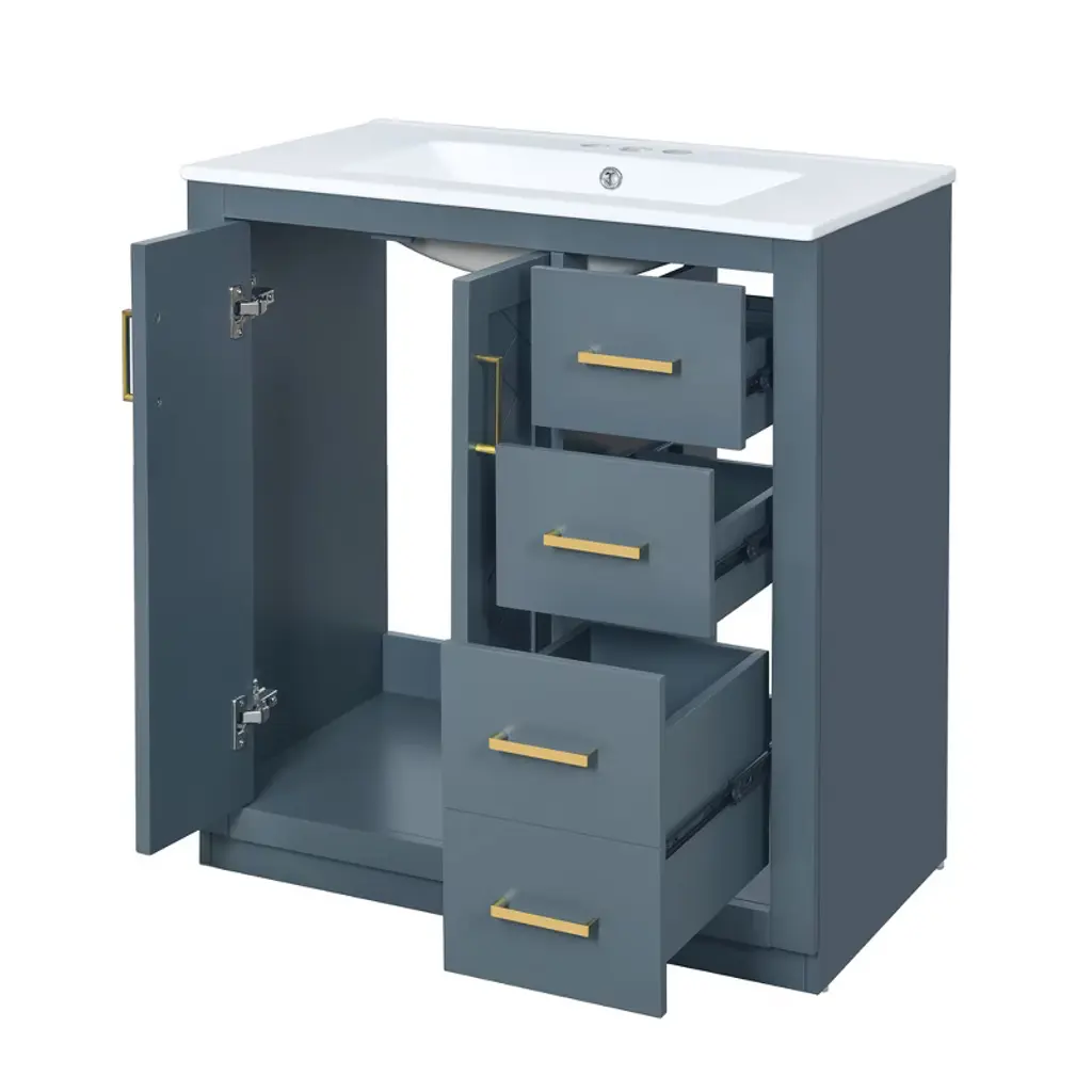 Crafted with a sturdy solid wood frame and high-quality MDF panels, this bathroom vanity offers exceptional durability and long-lasting performance. The water-resistant finish protects against moisture damage, ensuring your vanity maintains its elegant appearance while withstanding daily use in humid bathroom environments.