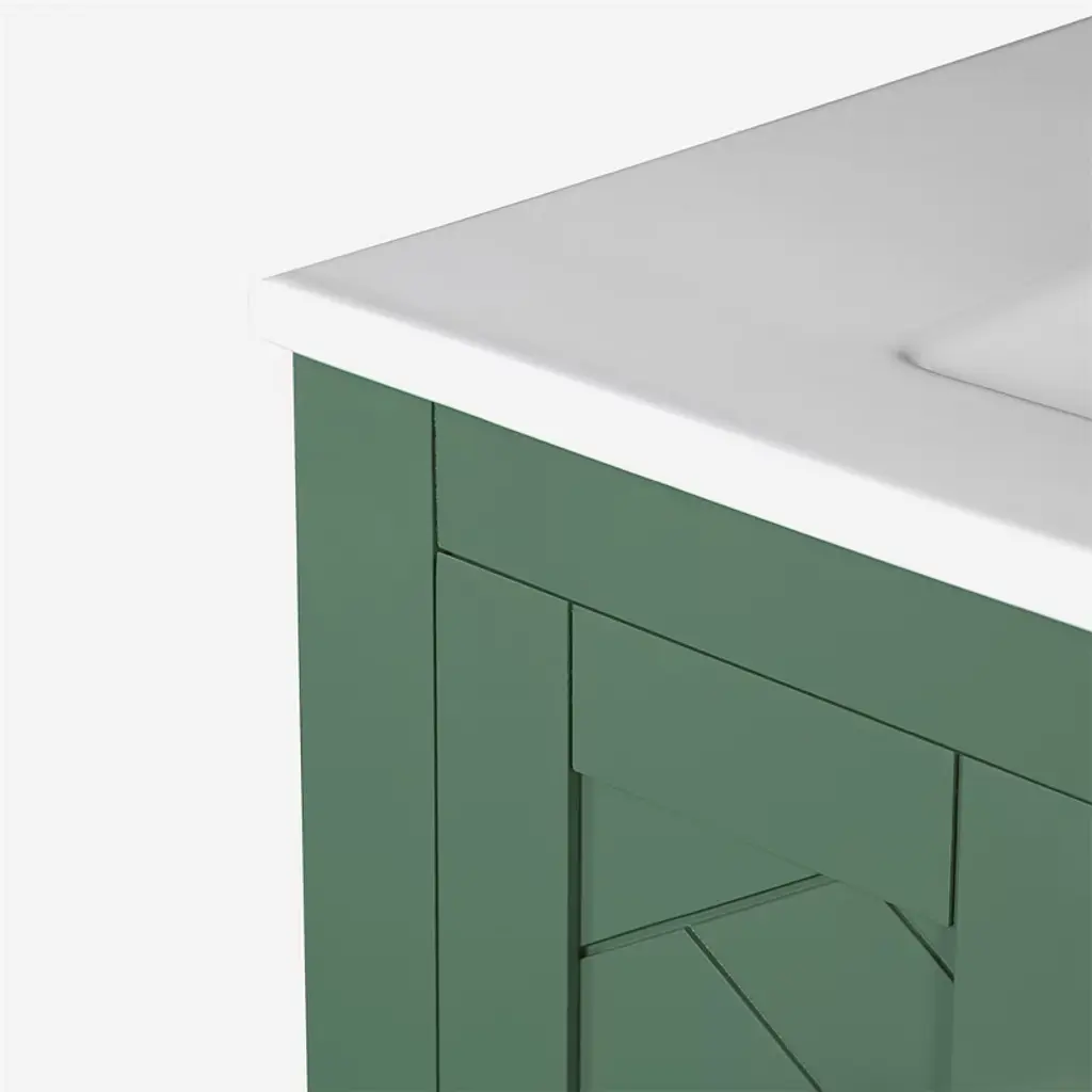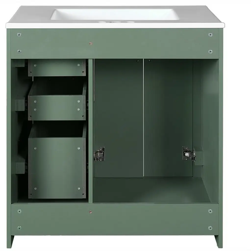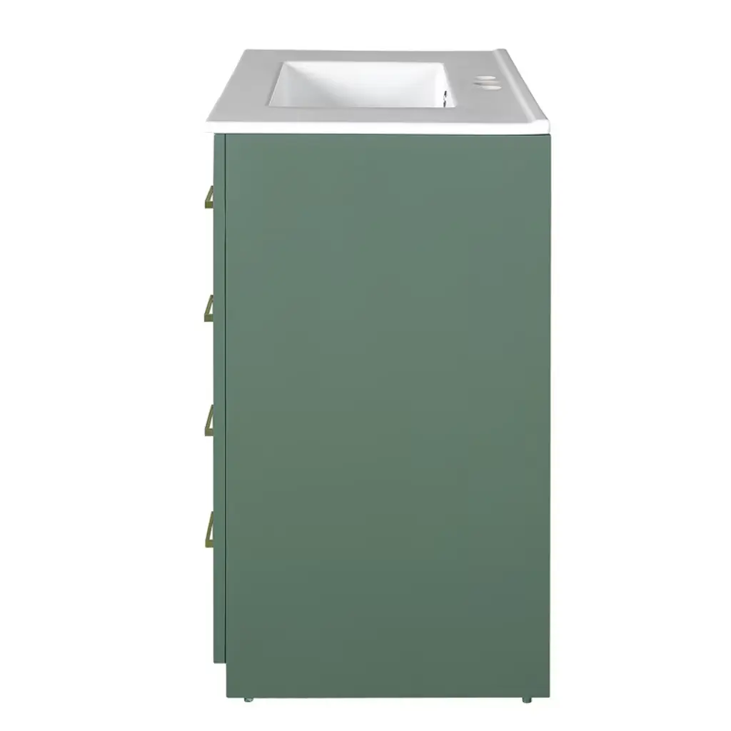 Xinghanzhenxuan Green Solid Wood Bathroom Vanity With Ceramic Sink, Freestanding Vanity Set With 3 Drawers & Soft-close Doors