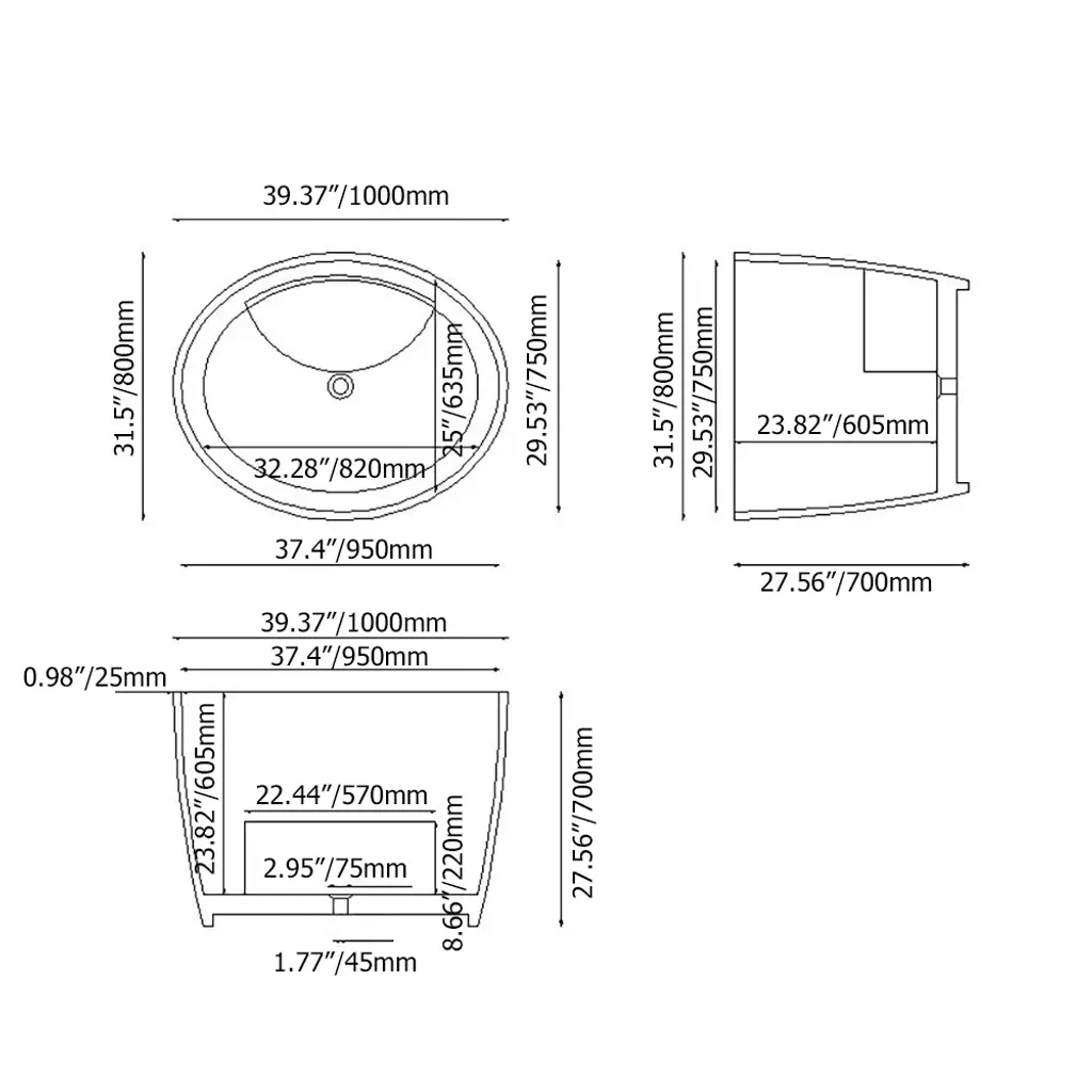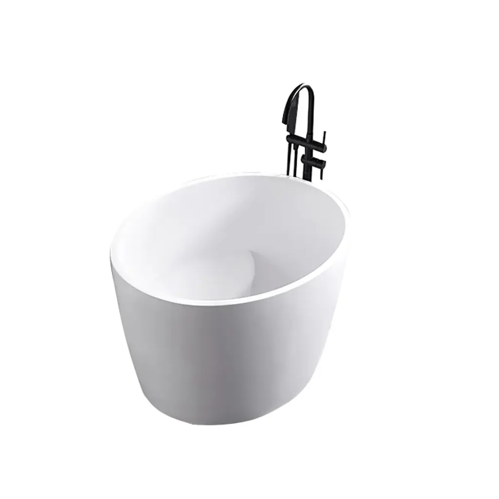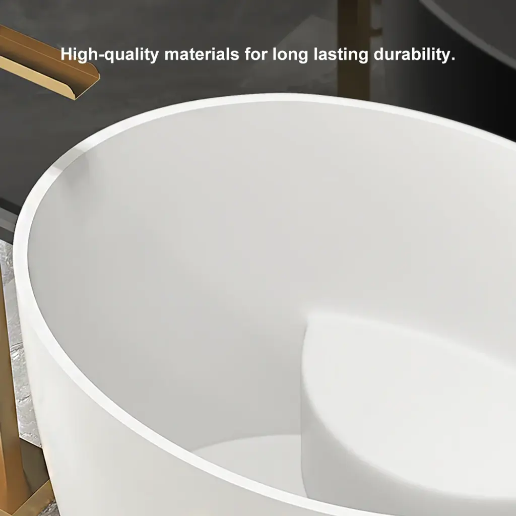 Perfect for compact spaces, this 39.37" deep soaking bathtub offers a luxurious retreat. Crafted from durable stone resin with a sleek matte white finish, its oval design features a built-in seat and ergonomic height for exceptional comfort and heat retention. This freestanding bathtub masterfully combines space-saving design with deep-soak functionality for the ultimate personal spa experience.