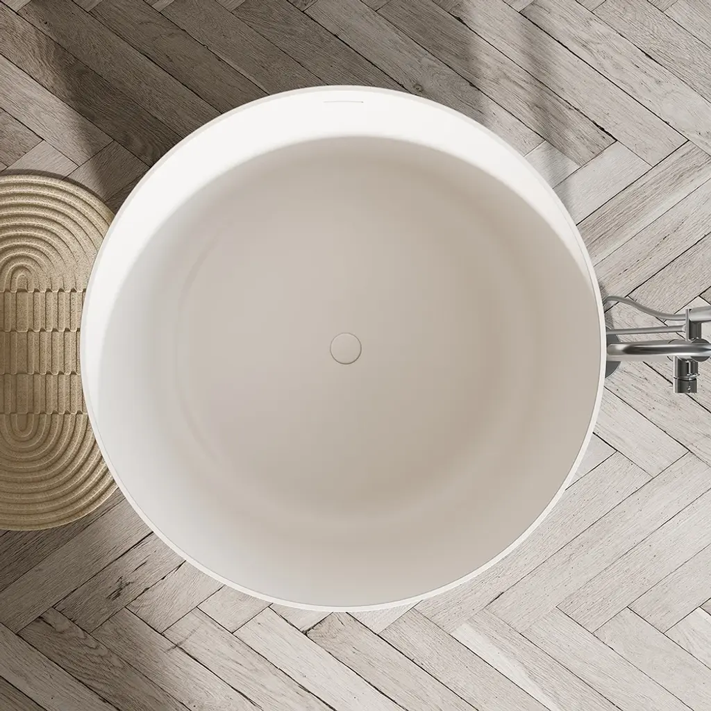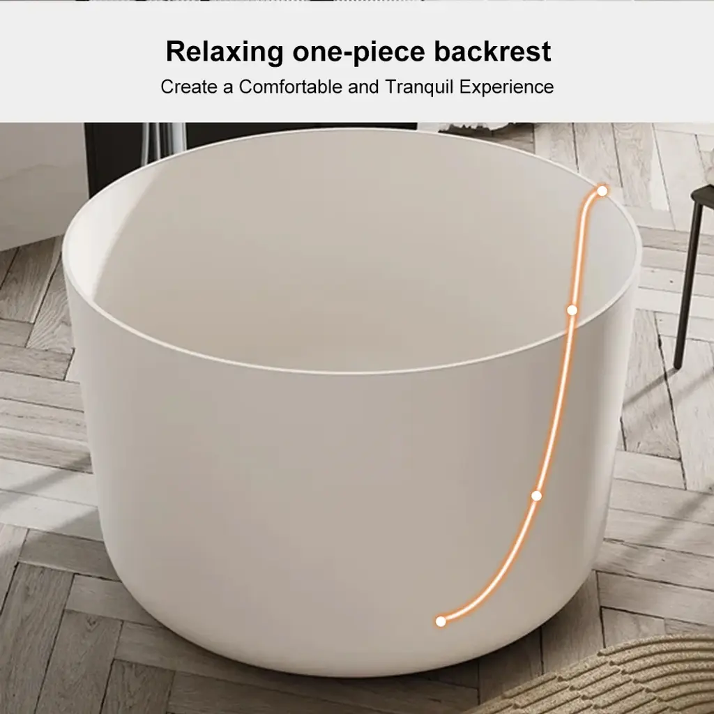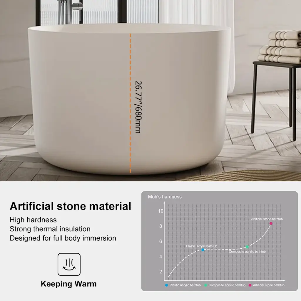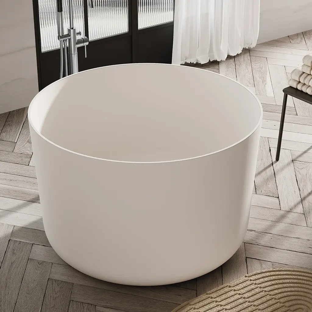 Discover deep meditation in this 41" round freestanding bathtub. Expertly crafted from high-grade stone resin with an elegant matte white finish, its compact design maximizes depth for full-body immersion. Ideal for solo bathers, this bathtub combines minimalist Japanese aesthetics with durable, low-maintenance luxury for the ultimate restorative experience.