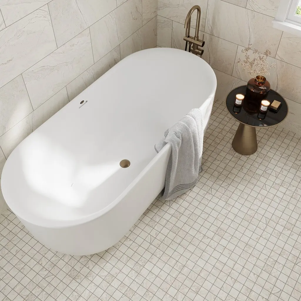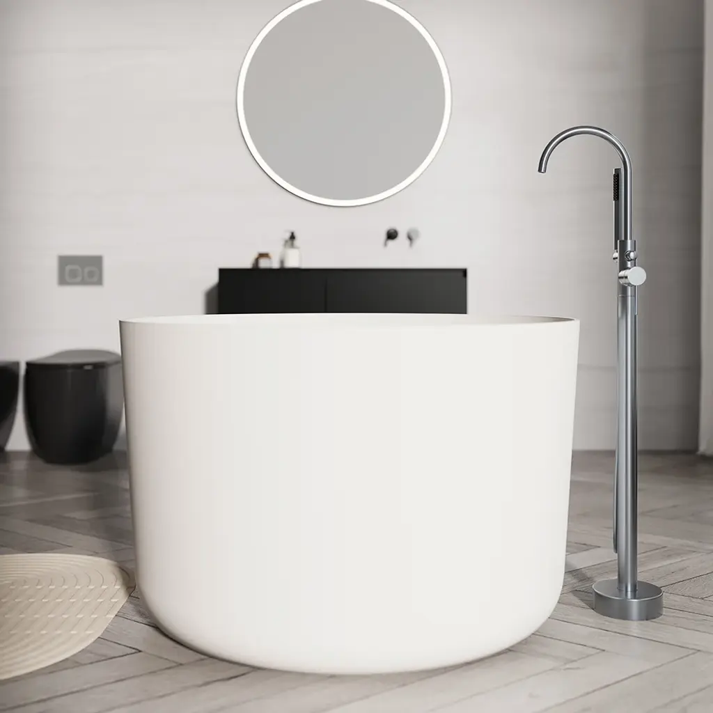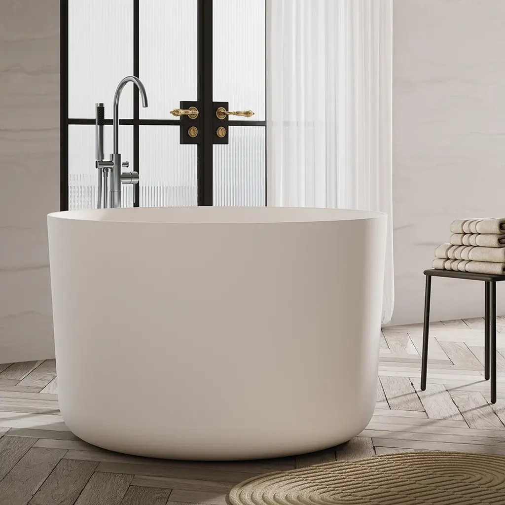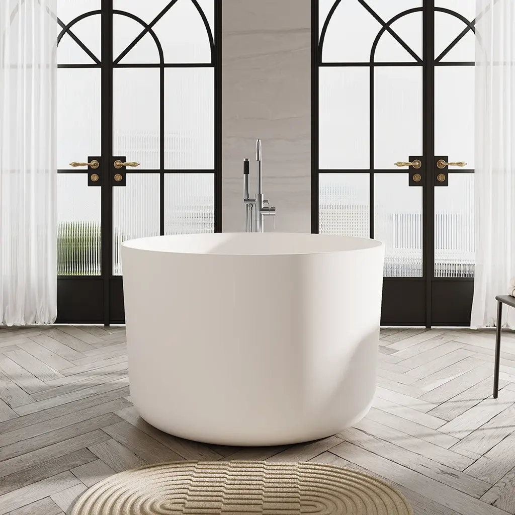 Discover deep meditation in this 41" round freestanding bathtub. Expertly crafted from high-grade stone resin with an elegant matte white finish, its compact design maximizes depth for full-body immersion. Ideal for solo bathers, this bathtub combines minimalist Japanese aesthetics with durable, low-maintenance luxury for the ultimate restorative experience.