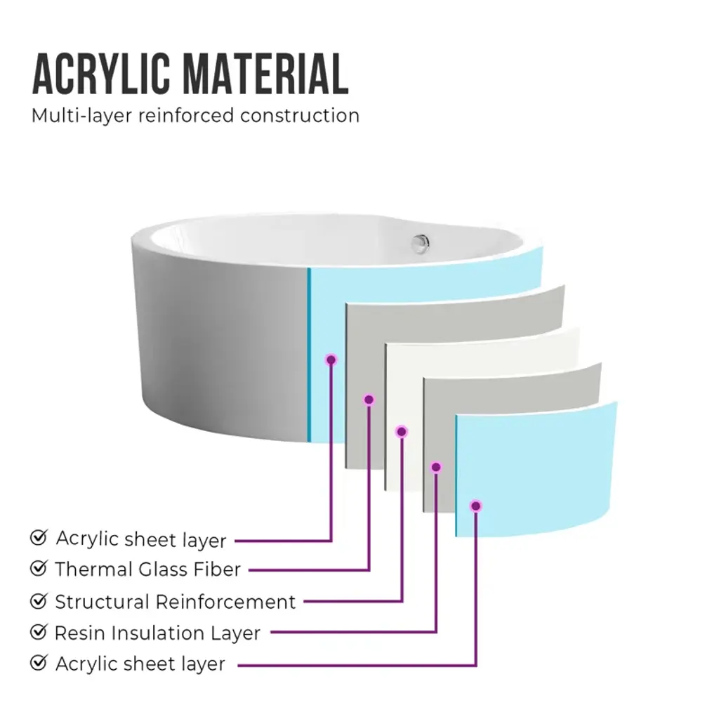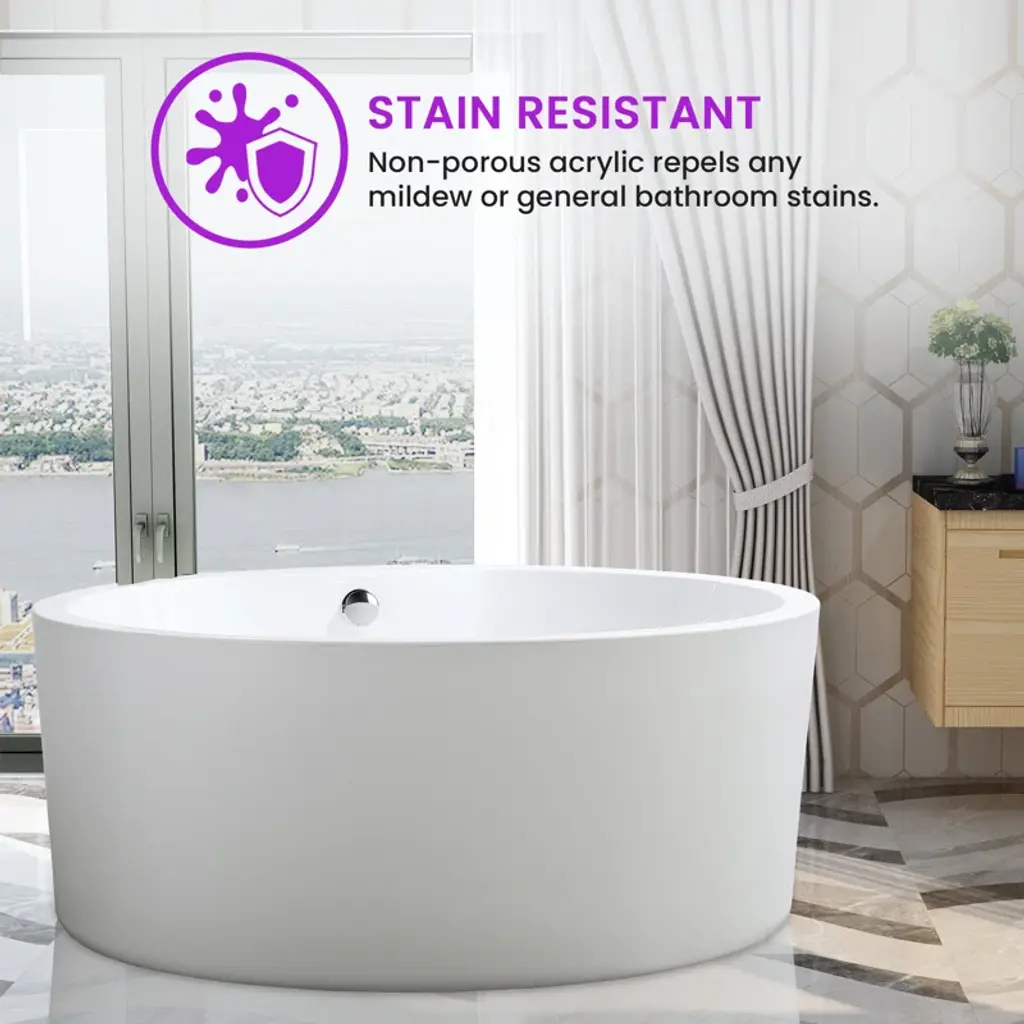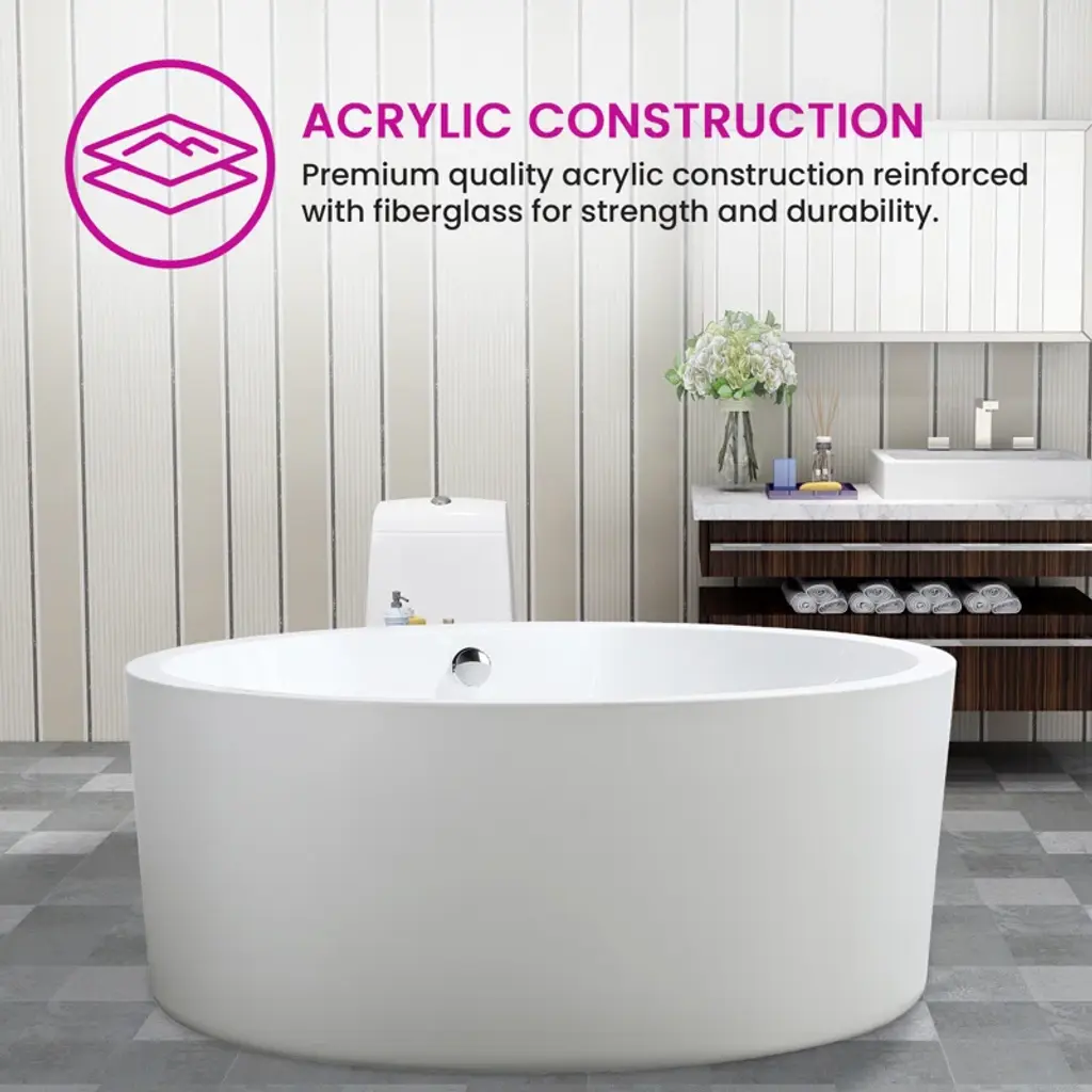 Come home and relax in your luxurious freestanding bathtub by Vanity Art. The contemporary design and defined lines will complement any bathroom decor and make the room seem more spacious. The pure-scape stand-alone tub is ergonomically engineered and will comfortably hold your body, so you can soak in peaceful tranquility. 1 person bathing.