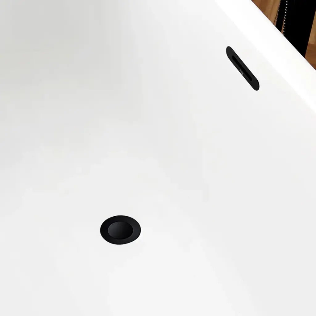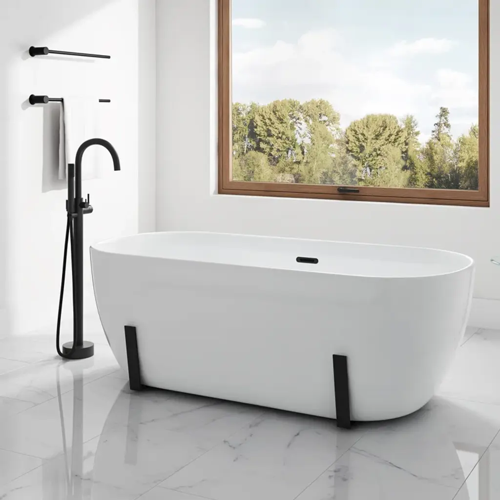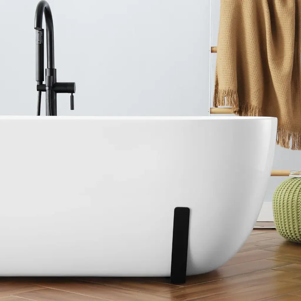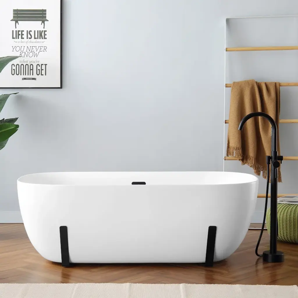 This freestanding bathtub’s black metal cradle adds a touch of industrial edge to its delicately rounded silhouette. It’s built from lightweight but durable acrylic that’s slip-resistant, and features a slotted overflow drain to prevent spills. Add the hardware of your choice and soak it all in.
