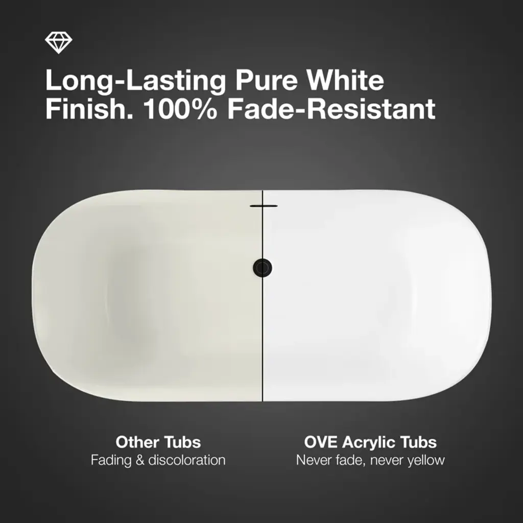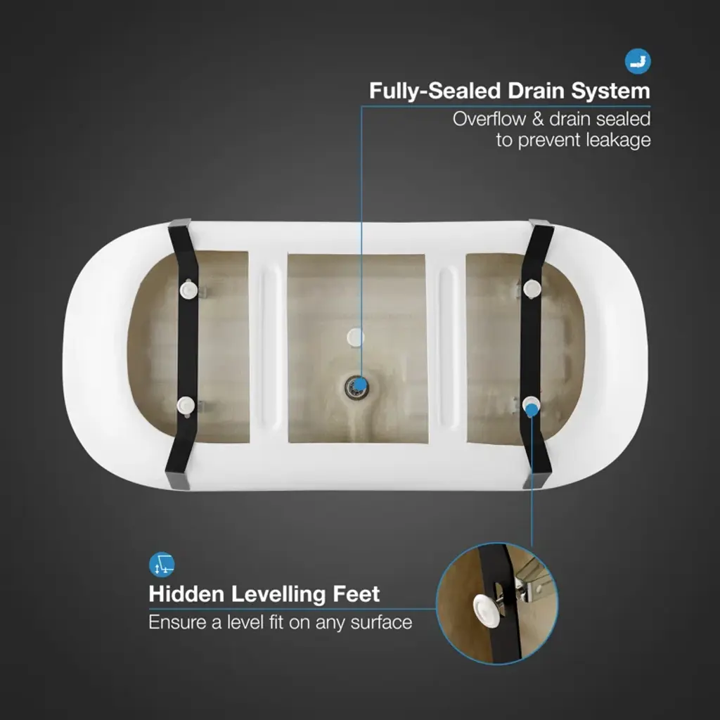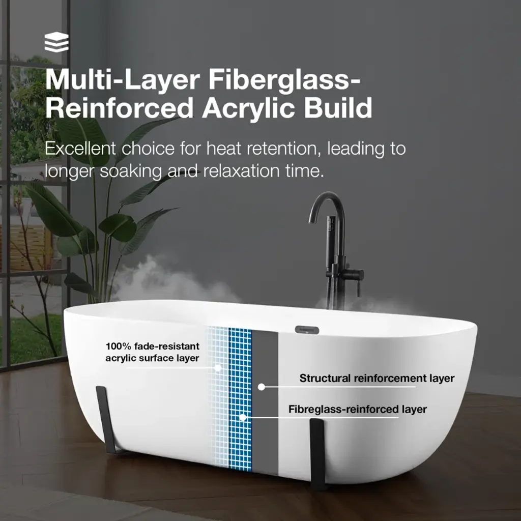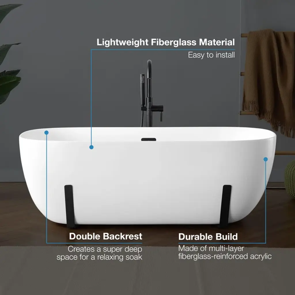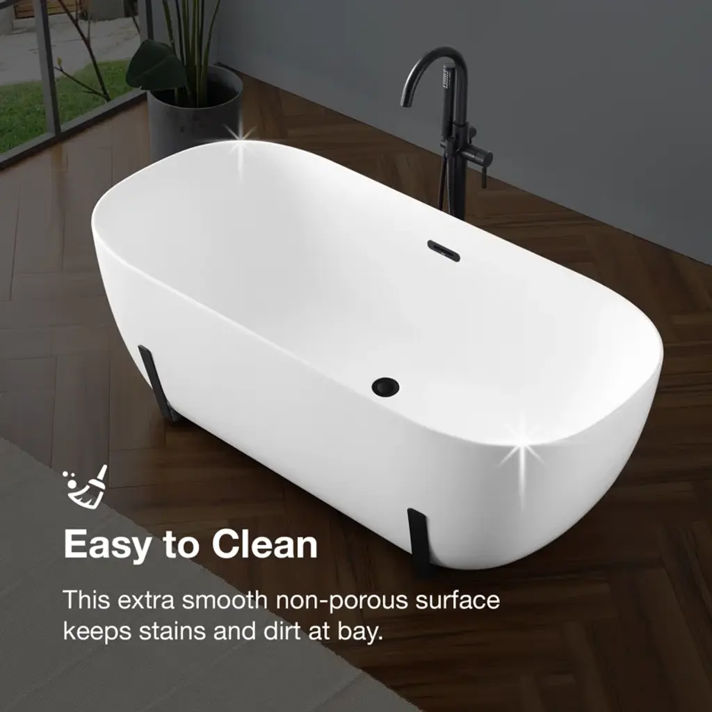 This freestanding bathtub’s black metal cradle adds a touch of industrial edge to its delicately rounded silhouette. It’s built from lightweight but durable acrylic that’s slip-resistant, and features a slotted overflow drain to prevent spills. Add the hardware of your choice and soak it all in.