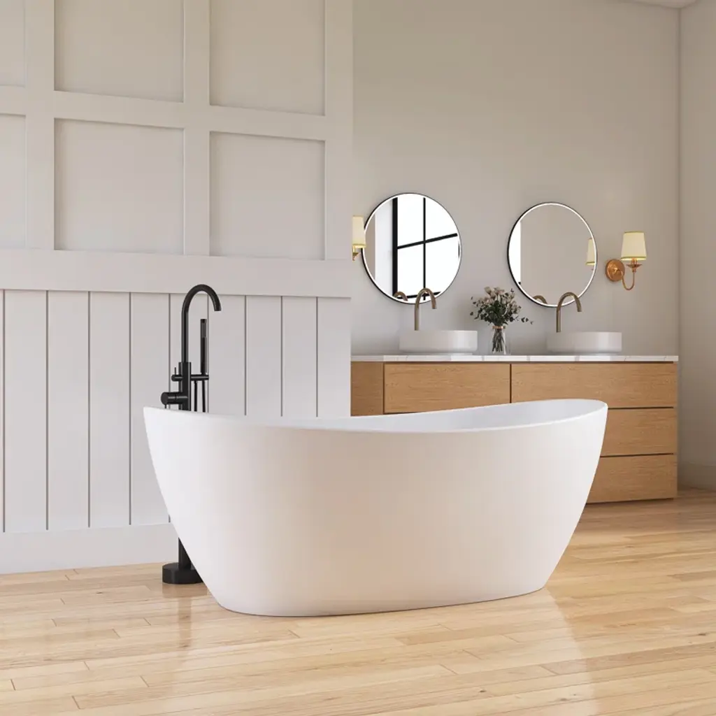 65'' Freestanding Bathtub Solid Surface Deep Soaking Tubs Double Slippers