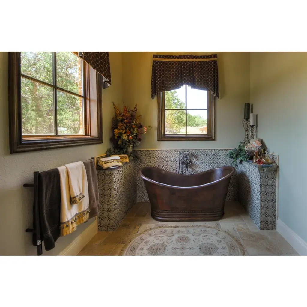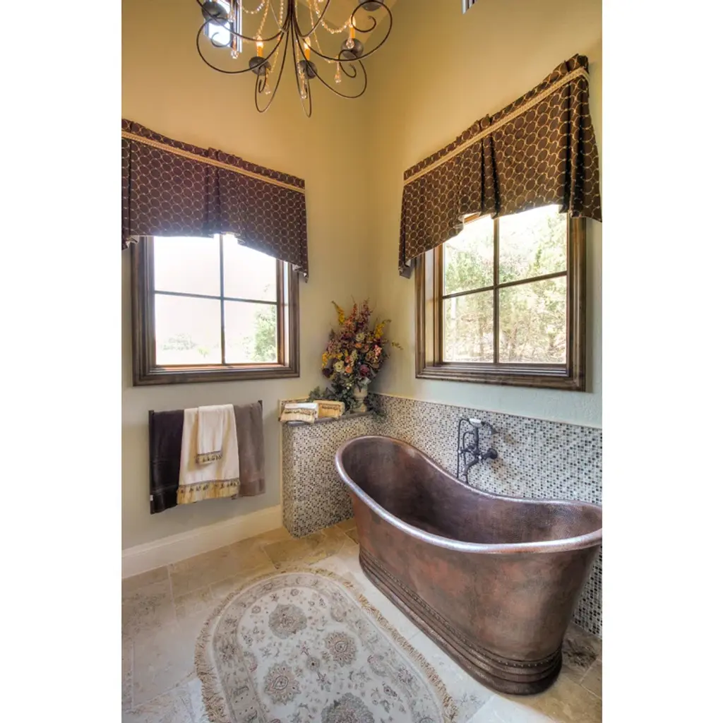Envelop yourself in luxury! Our freestanding copper bathtubs transform ordinary bathrooms into spa-like sanctuaries. The richness of the copper coupled with its natural heat-conducting elements allows you to luxuriate in the tub longer, elevating bath time bliss and bathroom style to unprecedented levels.