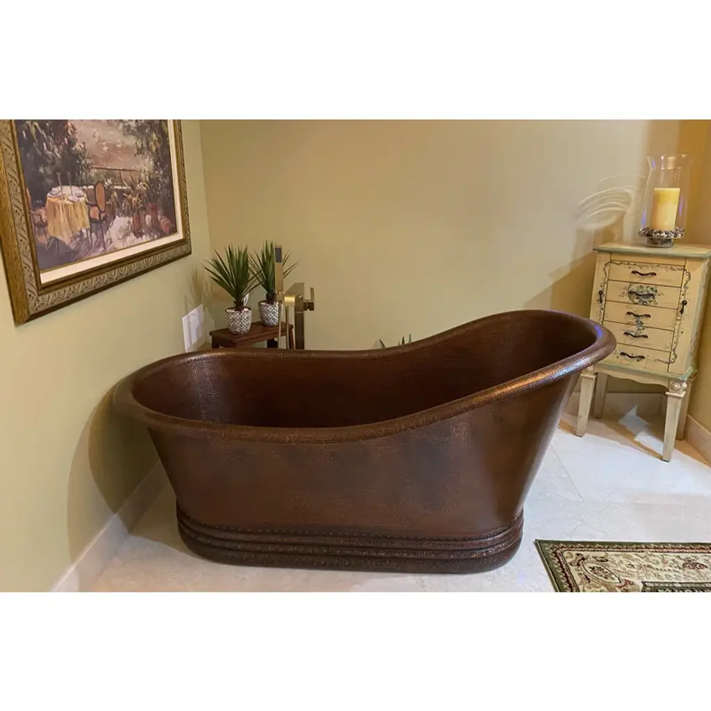 Envelop yourself in luxury! Our bathtubs transform ordinary bathrooms into spa-like sanctuaries. The richness of the copper coupled with its natural heat-conducting elements allows you to luxuriate in the tub longer, elevating bath time bliss and bathroom style to unprecedented levels.