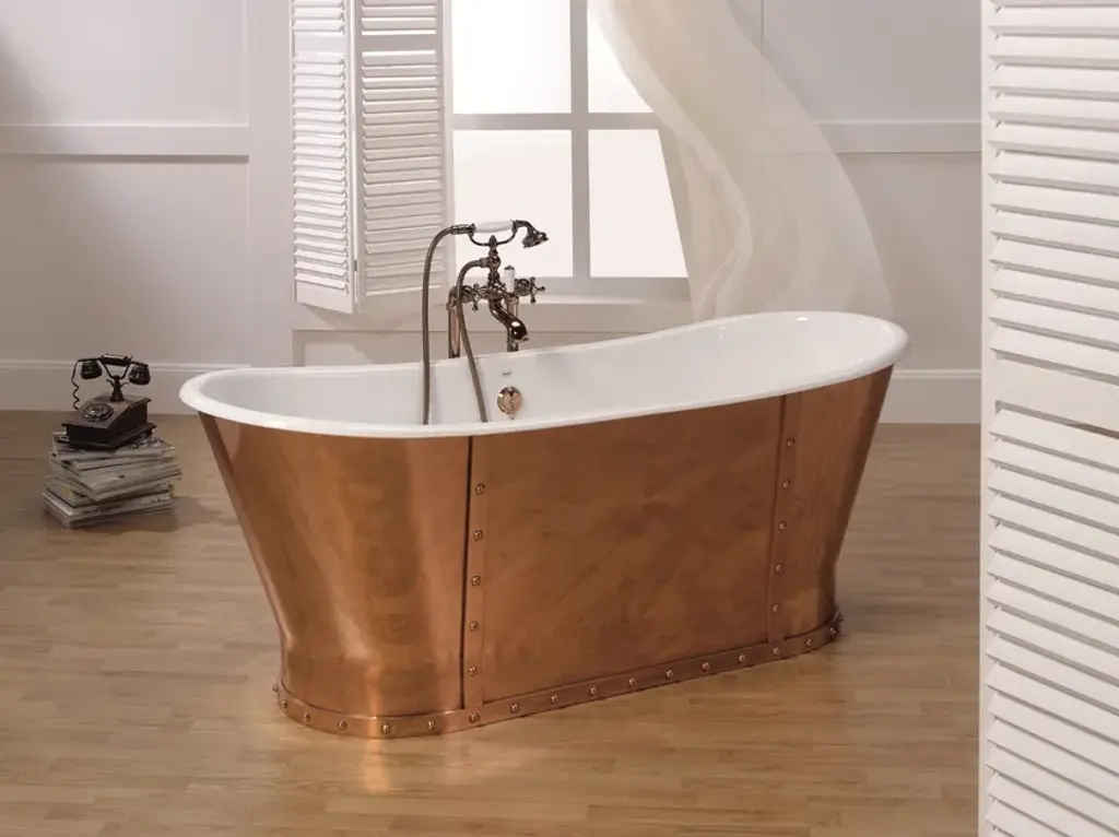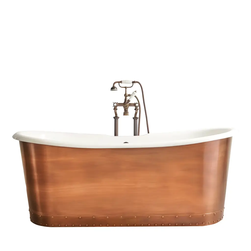 Envelop yourself in luxury! Our freestanding copper bath tubs transform ordinary bathrooms into spa-like sanctuaries. The richness of the copper coupled with its natural heat conducting elements allow you to luxuriate in the tub longer, elevating bath time bliss and bathroom style to unprecedented levels. This tub includes pre-drilled overflow holes and must be used with a waste and overflow drain kit. Drain kit not included.