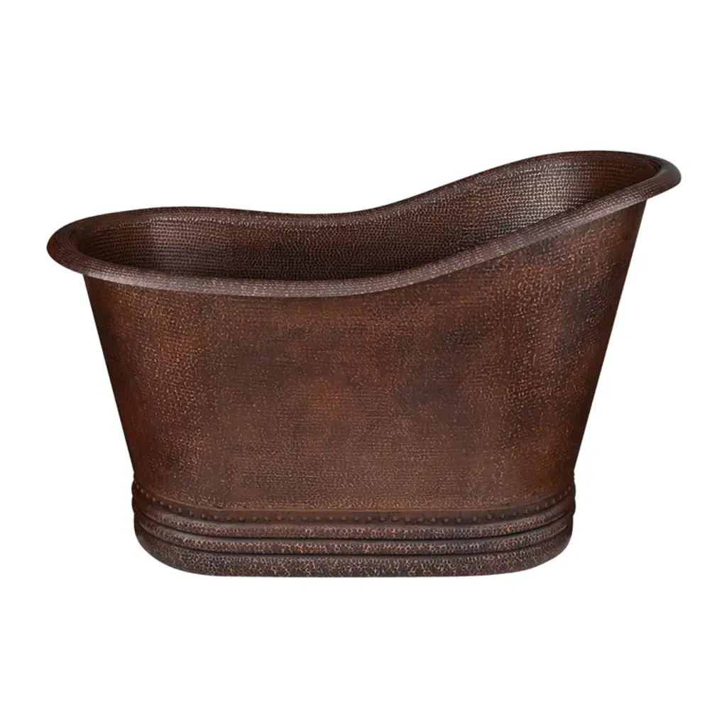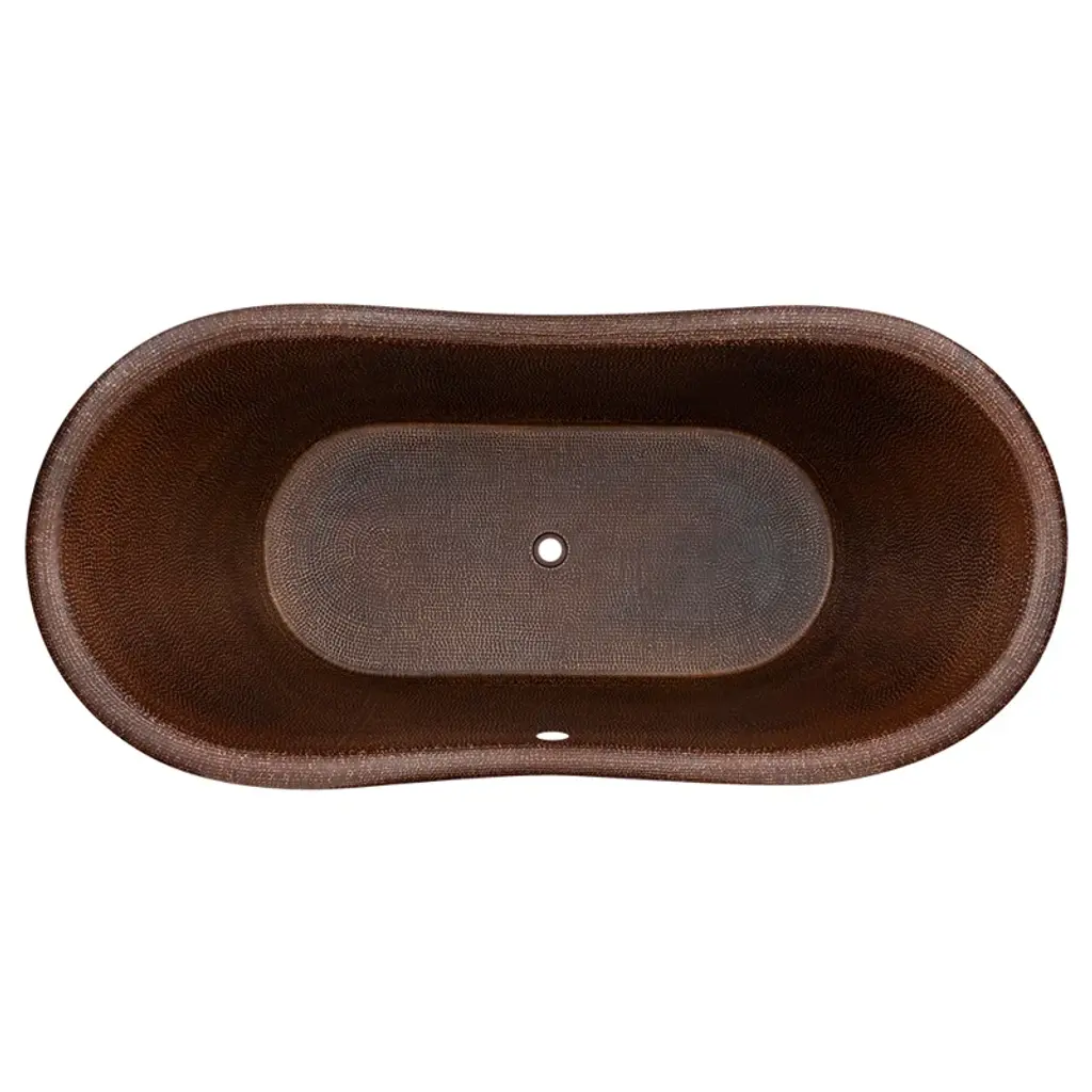 72" Hammered Copper Double Slipper Bathtub With Rings And Overflow Holes