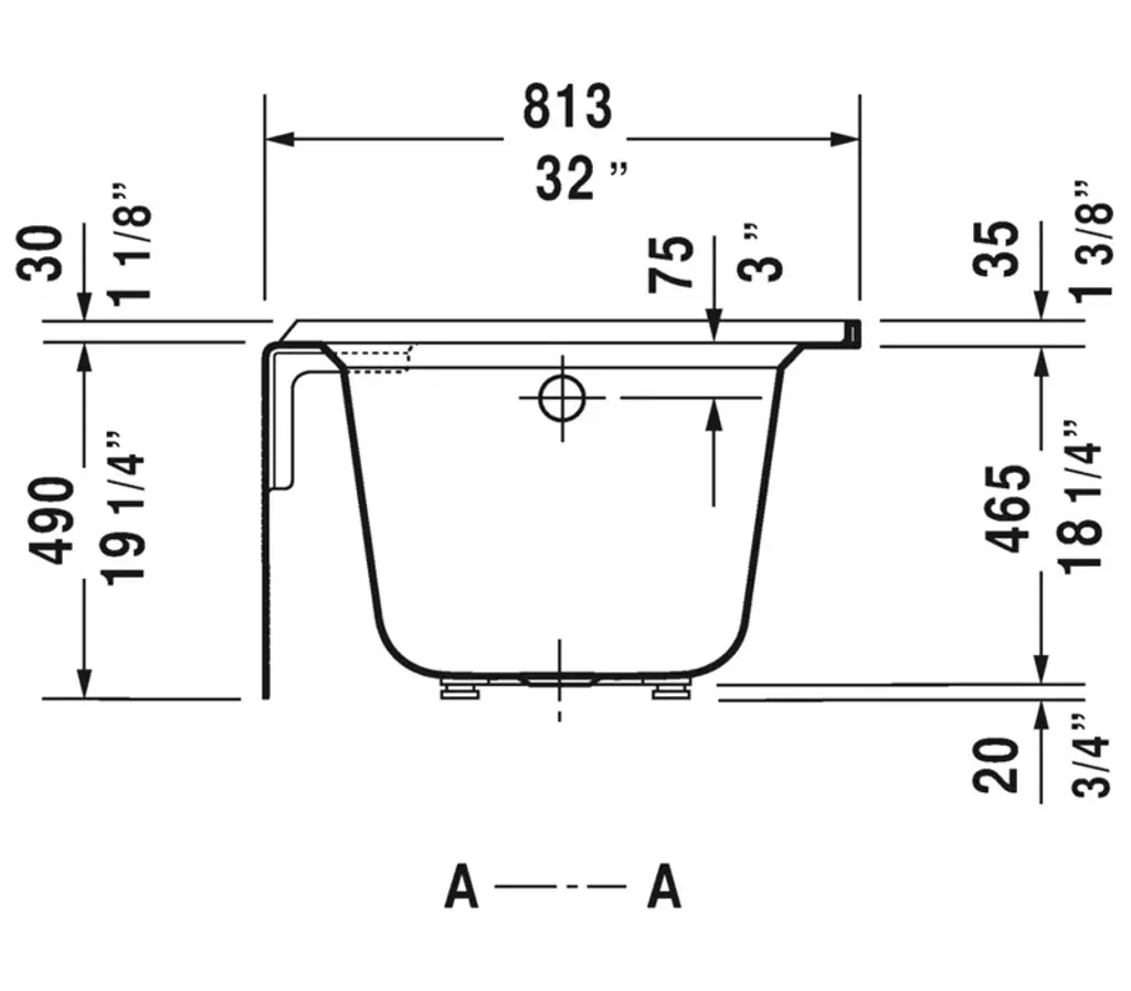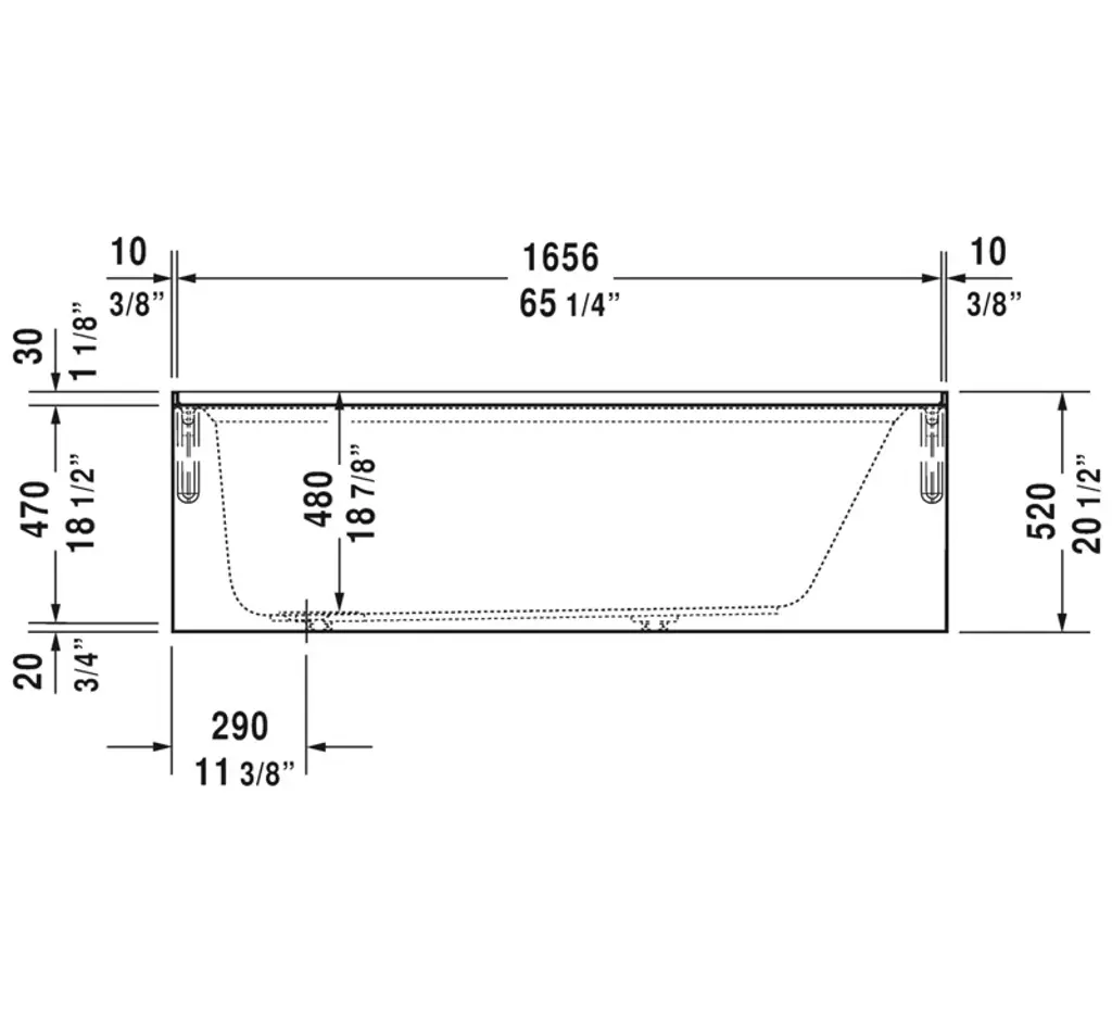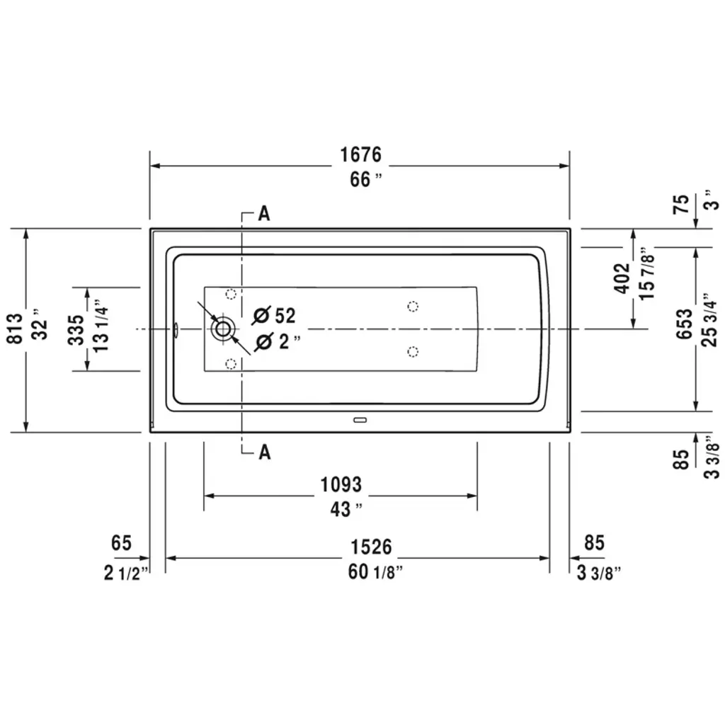 Bathtub Architec 66"x32" white with integrated panel and tile flange, drain left