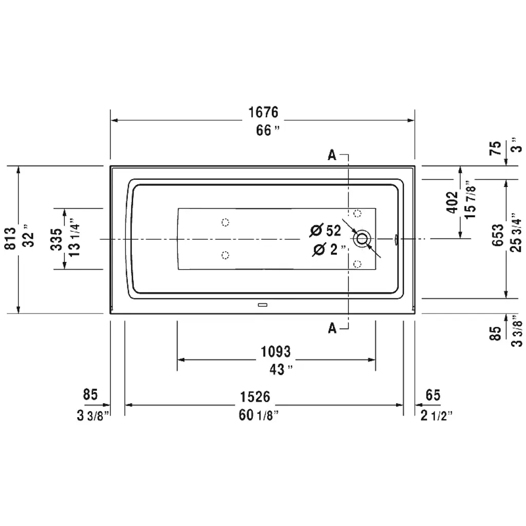 Architec 66" X 32'' Alcove Soaking Bathtub In , 19.25''