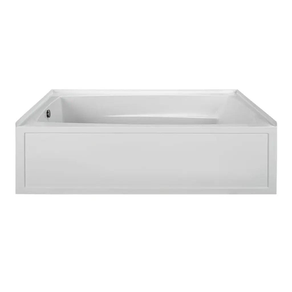 Integral-skirted rectangular tub with armrests and a textured bottom.