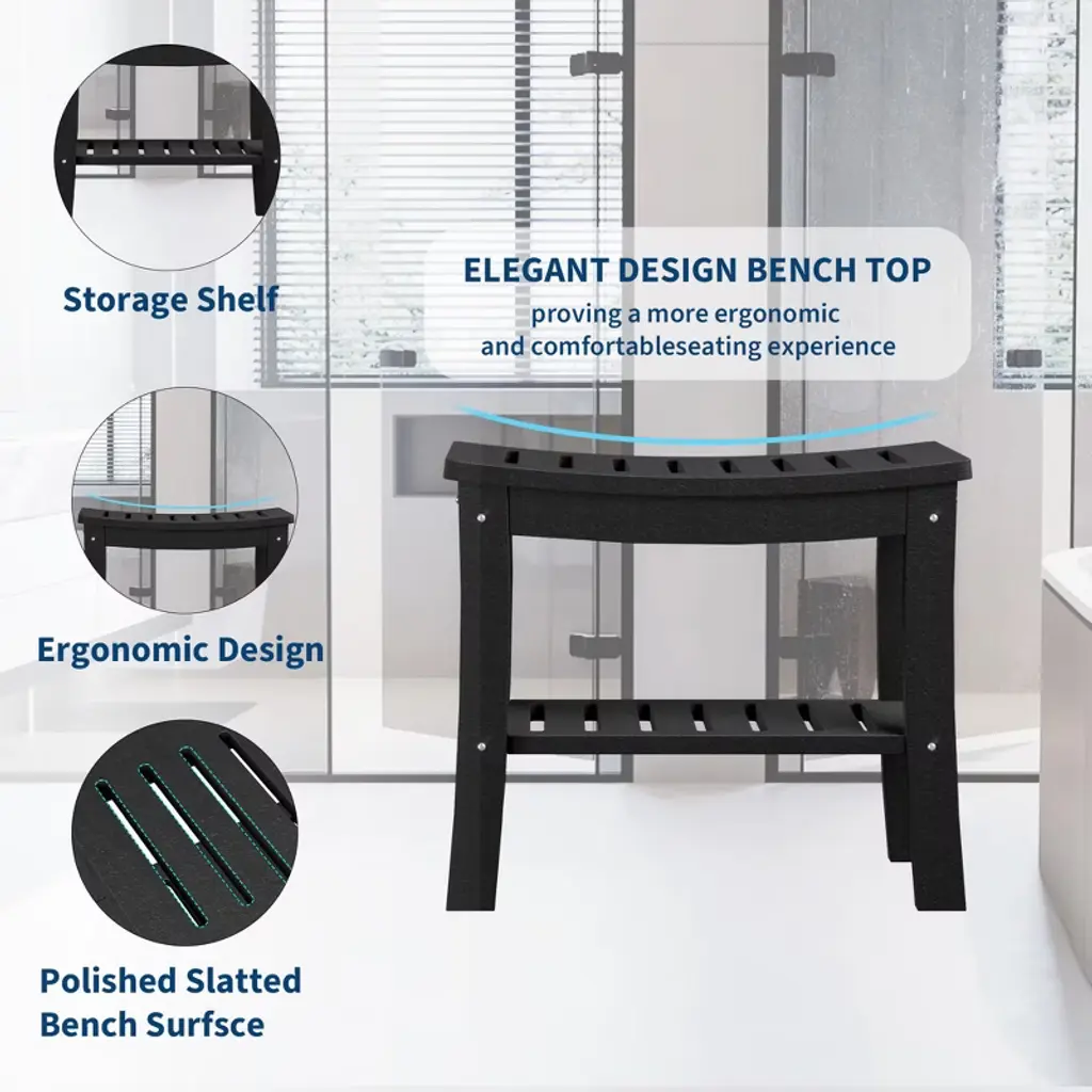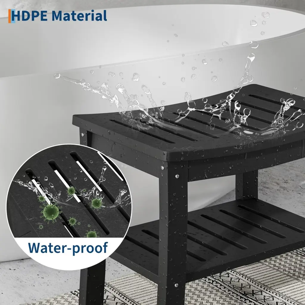 Bathroom Shower Bench with Storage - HDPE Waterproof Seat Stool - Stable Shower Chair for Bathtub and Spa