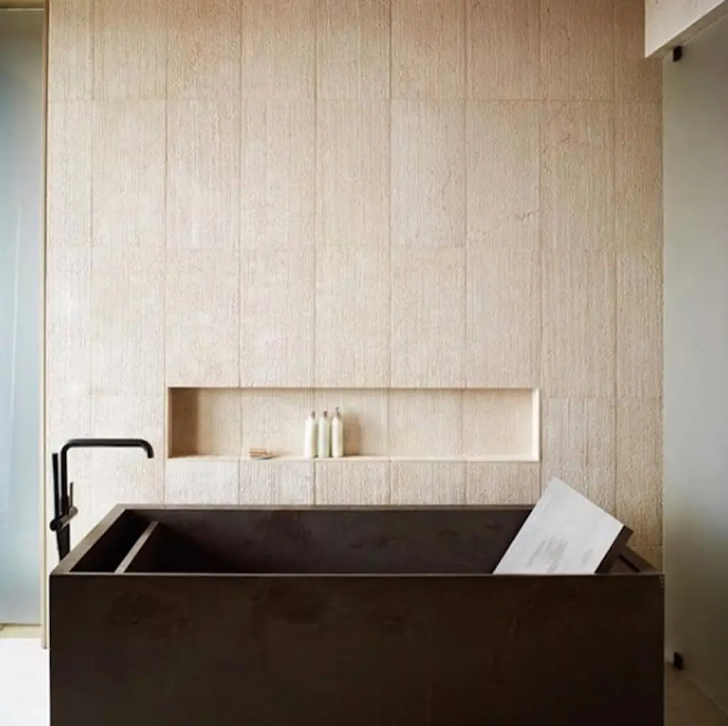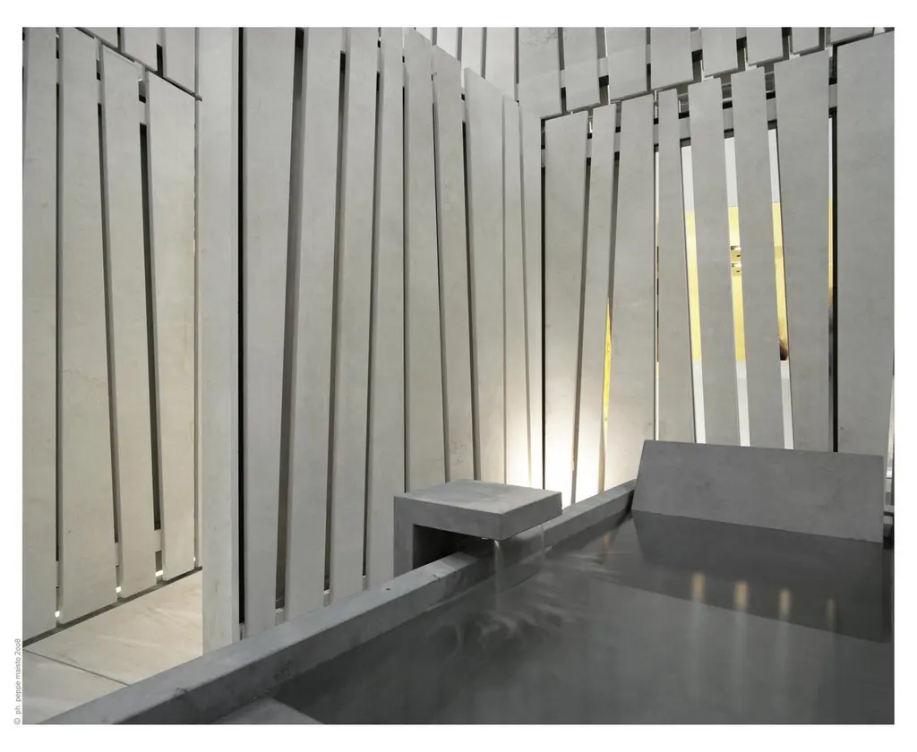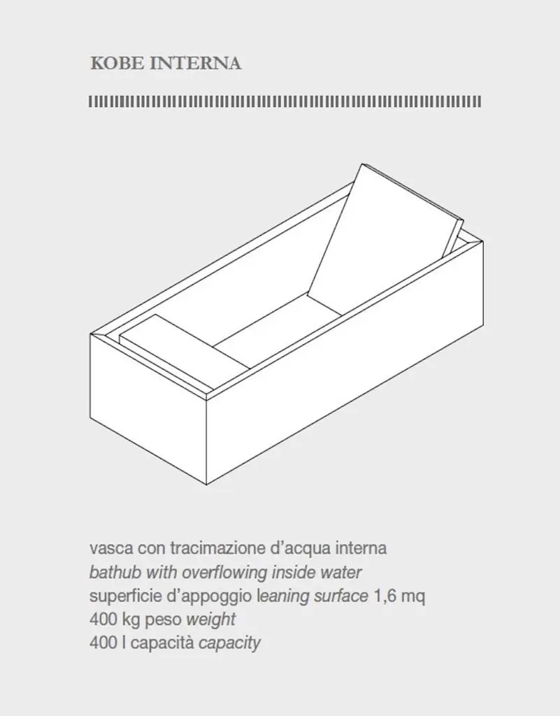 The Kobe Interna tub is part of the "stone likes water" collection designed by Hikaru Mori - This collection originates from the contemporary reinterpretation of the heritage of objects and environments in the Japanese thermal bath tradition: it is made of natural stones, essential shapes and stimulating surfaces conceived to exalt their privileged relationship with water. The standard finishes are: "string" or rigato in the exterior and honed in the interior.Dimensions, finishes and sizes are customizable.