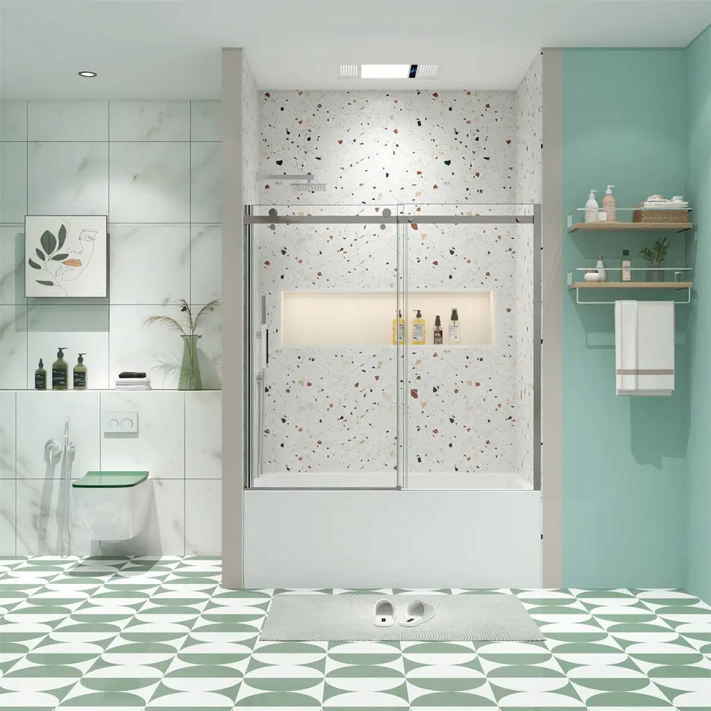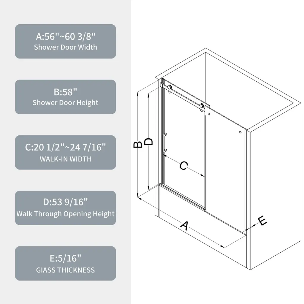Bathtub Sliding Shower Door With 5/16" Tempered Glass - Chrome