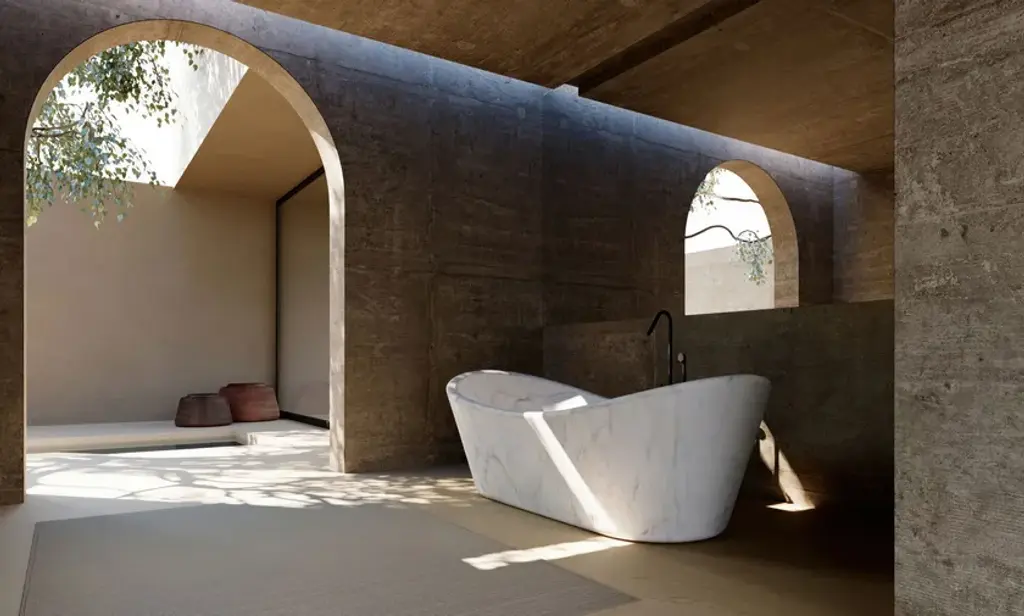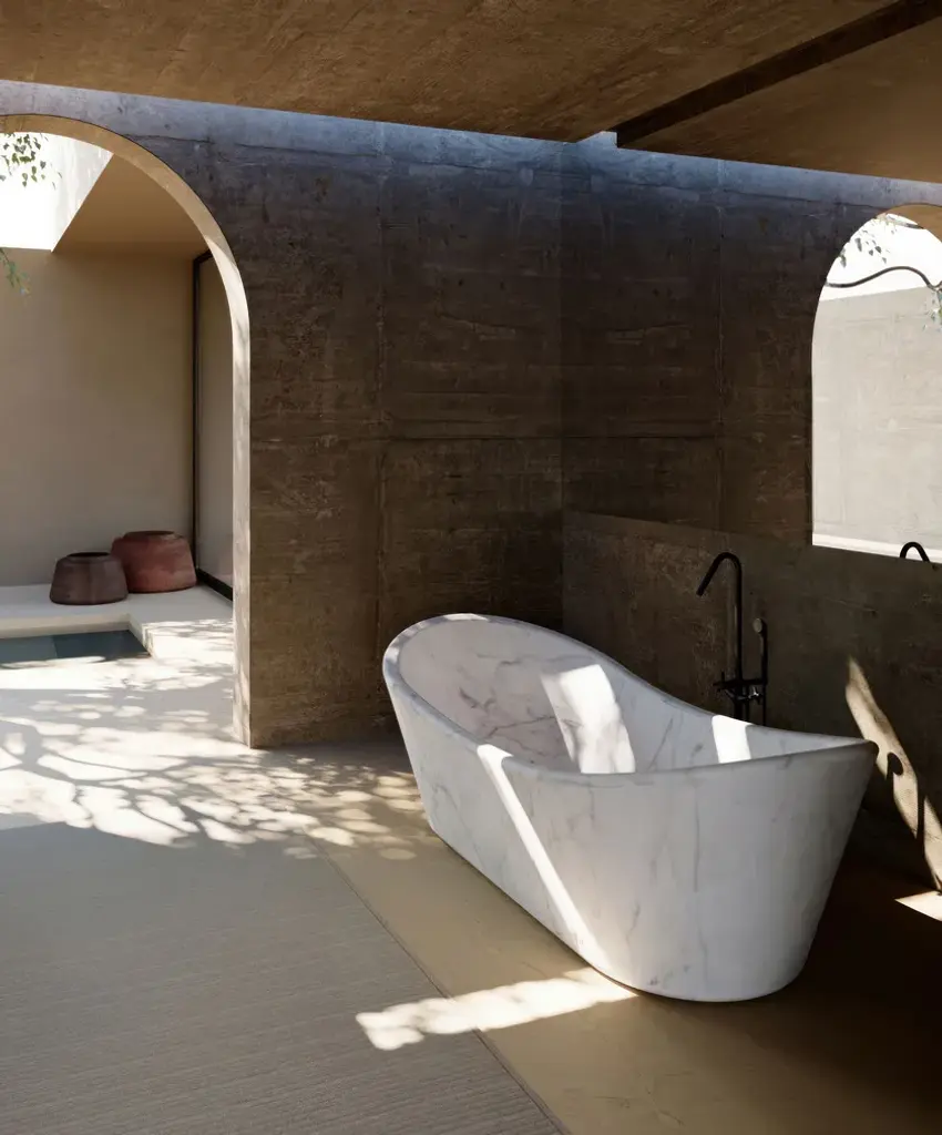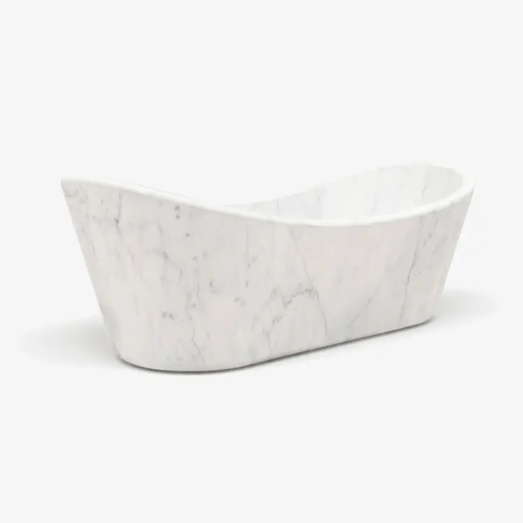 Its design is essential and impeccable, refined to highlight surfaces and volumes, defining wide and welcoming spaces. The brightness of the materials, rounded lines, and perfectly smooth finishes contribute to making this piece truly unique, perfect for stylishly furnishing the bathroom and transforming it into an oasis of total well-being. Available in marble and travertine, Caresi combines luxury and simplicity, aiming to stand out as the unmistakable focal point of any environment. Tub: Wide, deep, and rounded/overflowing structure measuring 190 X 91 X 67 cm (Length, Width, Thickness).Specifically, its thickness varies depending on the points considered, respectively 49 cm at the lower part and 67 cm at the ends.Marble: Carrara white marble, polished surface treated with stain and rain protection.Cutting and welding with state-of-the-art numerically controlled work tools.